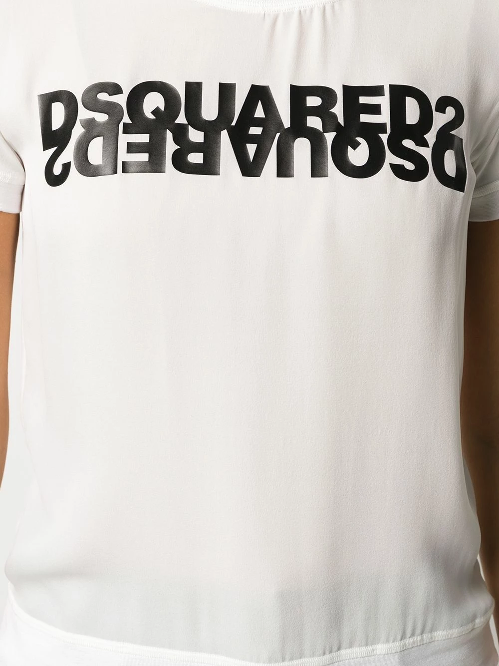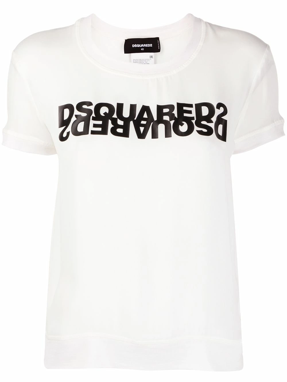 T-shirt ajusté à logo en soie Dsquared2 avec logo imprimé sur le devant, encolure ronde, manches courtes et ourlet droit. Couleur : blanc.