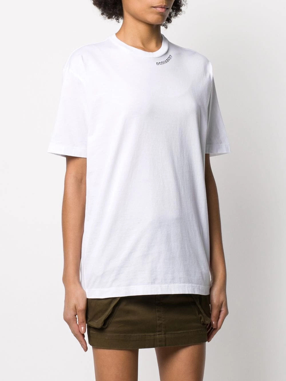 Encolure ronde, manches courtes, ourlet droit, logo imprimé et orné. Couleur : blanc. Matière : COTON.