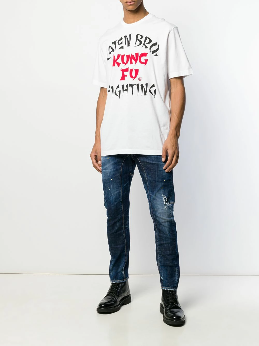 T-shirt Caten Bros en coton Dsquared2 avec encolure ronde, manches courtes et ourlet droit. Couleur : blanc.