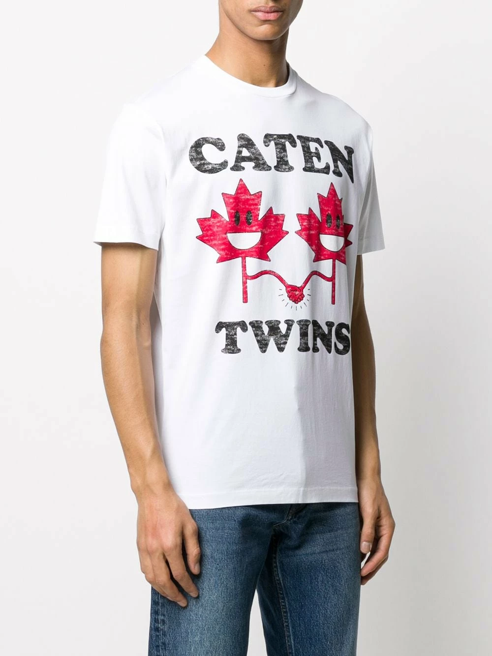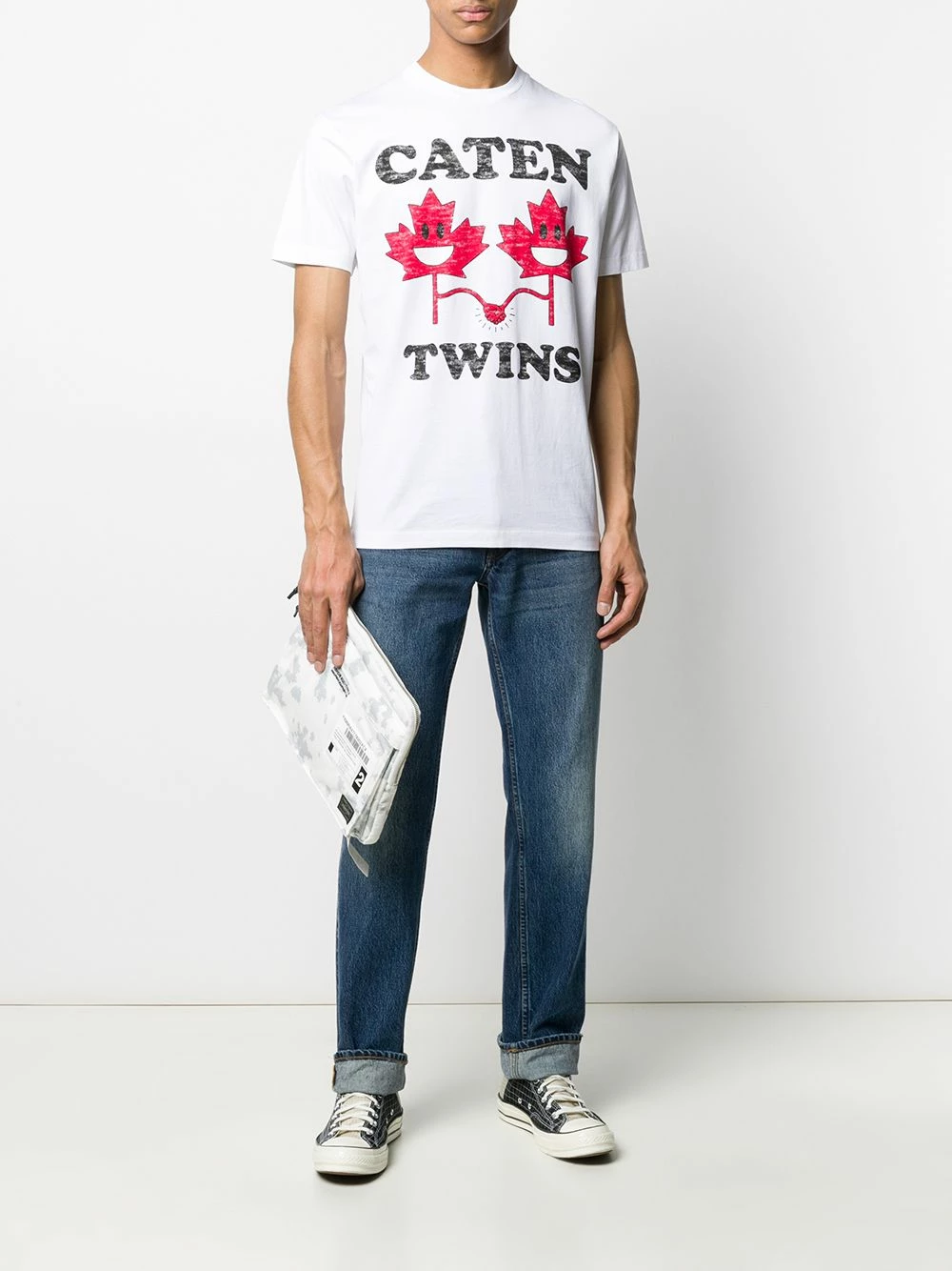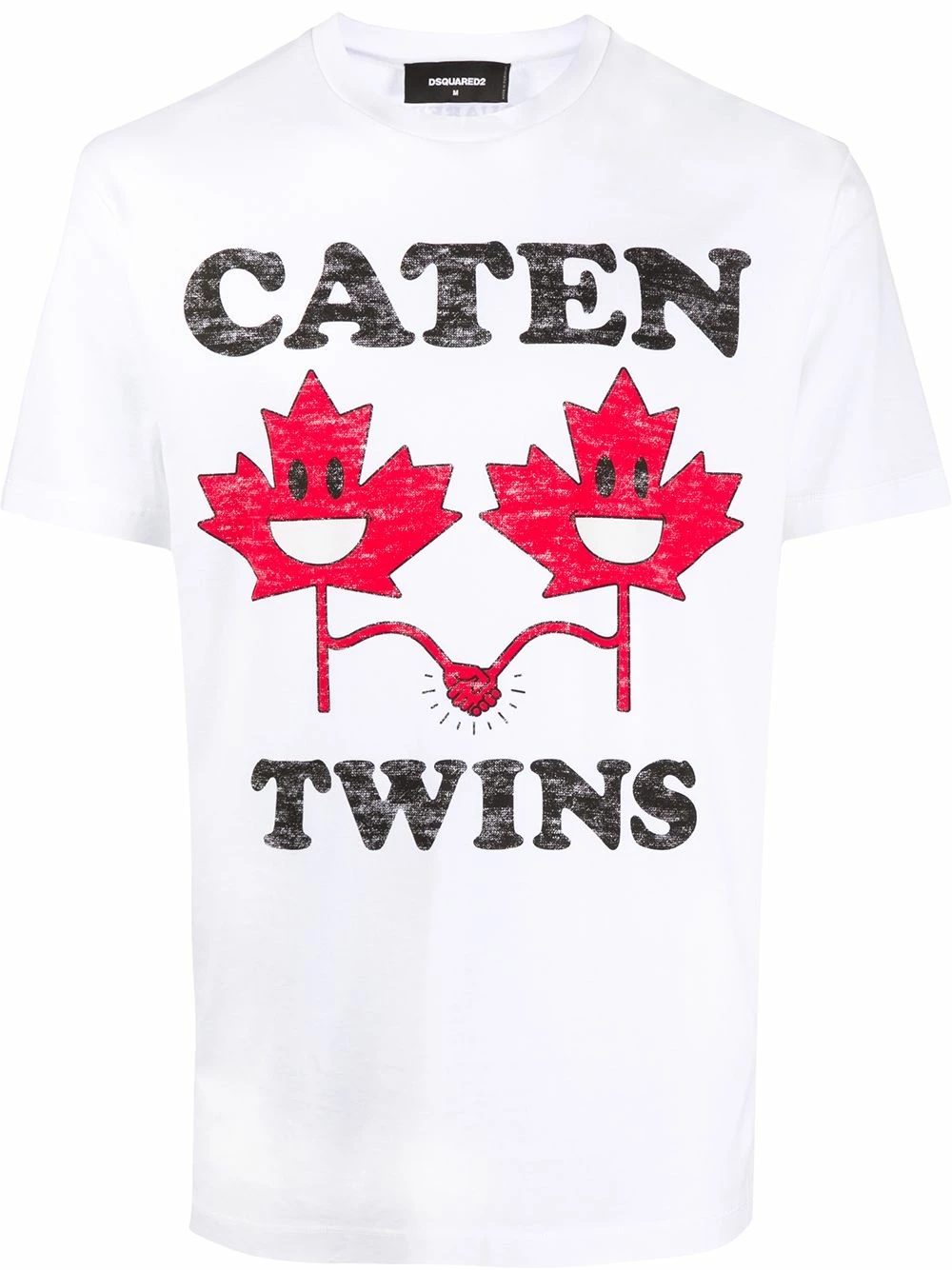 T-shirt Caten Twins en coton Dsquared2 avec encolure ronde, manches courtes et ourlet droit. Couleur : blanc.