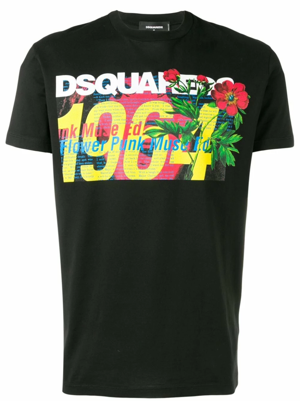 T-shirt imprimé 964 en coton Dsquared2 avec encolure ras du cou, manches courtes, imprimé devant, ourlet droit et forme détendue.
