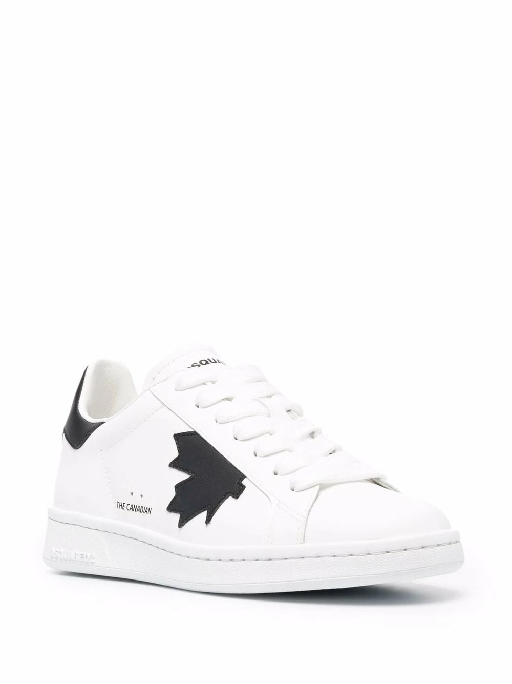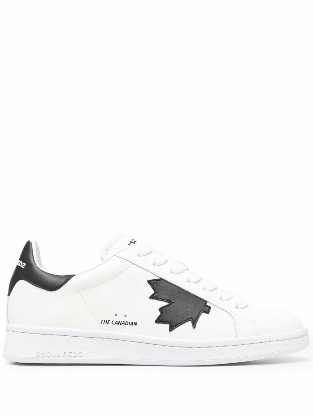 Imprimé feuille d’érable, languette à logo imprimé, logo imprimé à l’arrière, contrefort contrastant, fermeture à lacer sur le devant, semelle intérieure griffée, bout rond, semelle plate en caoutchouc. Matière : cuir.