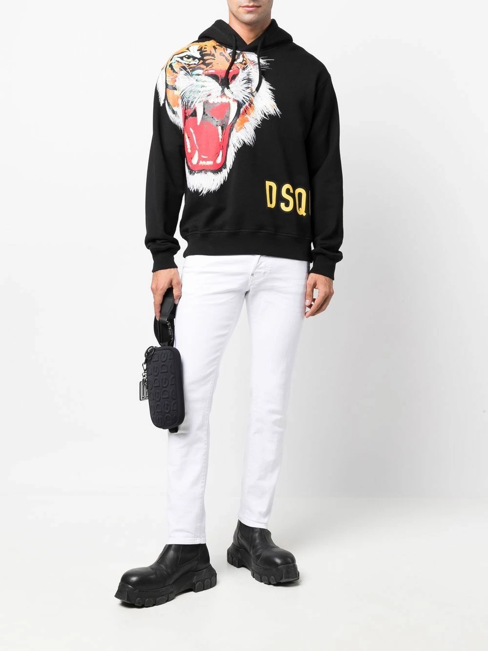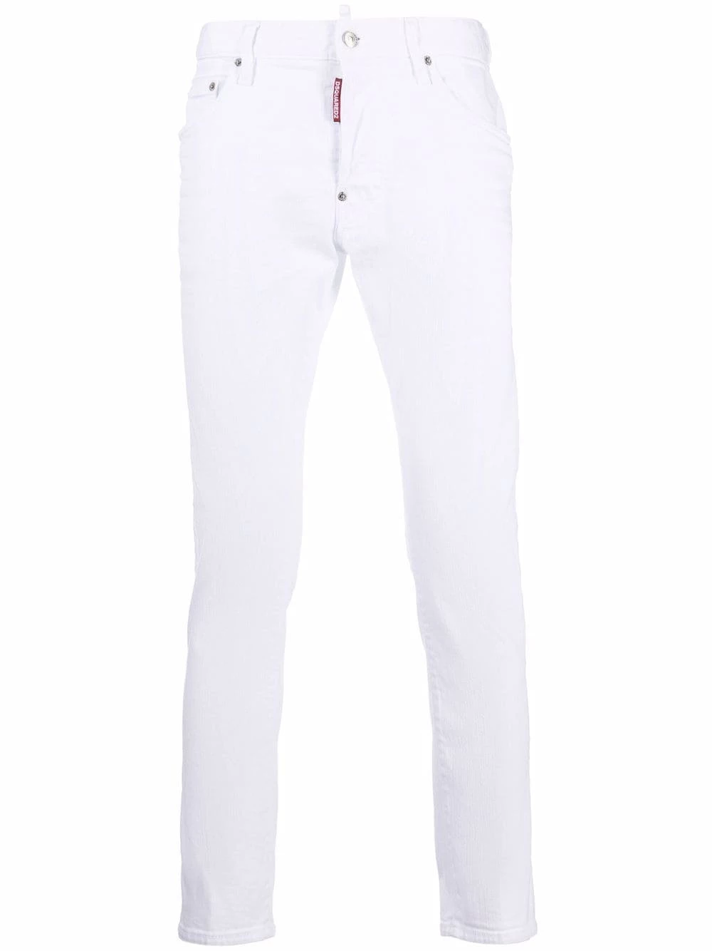 Denim délavé, passants de ceinture, fermeture à zip et boutons sur le devant, cinq poches classiques. Couleur : blanc.