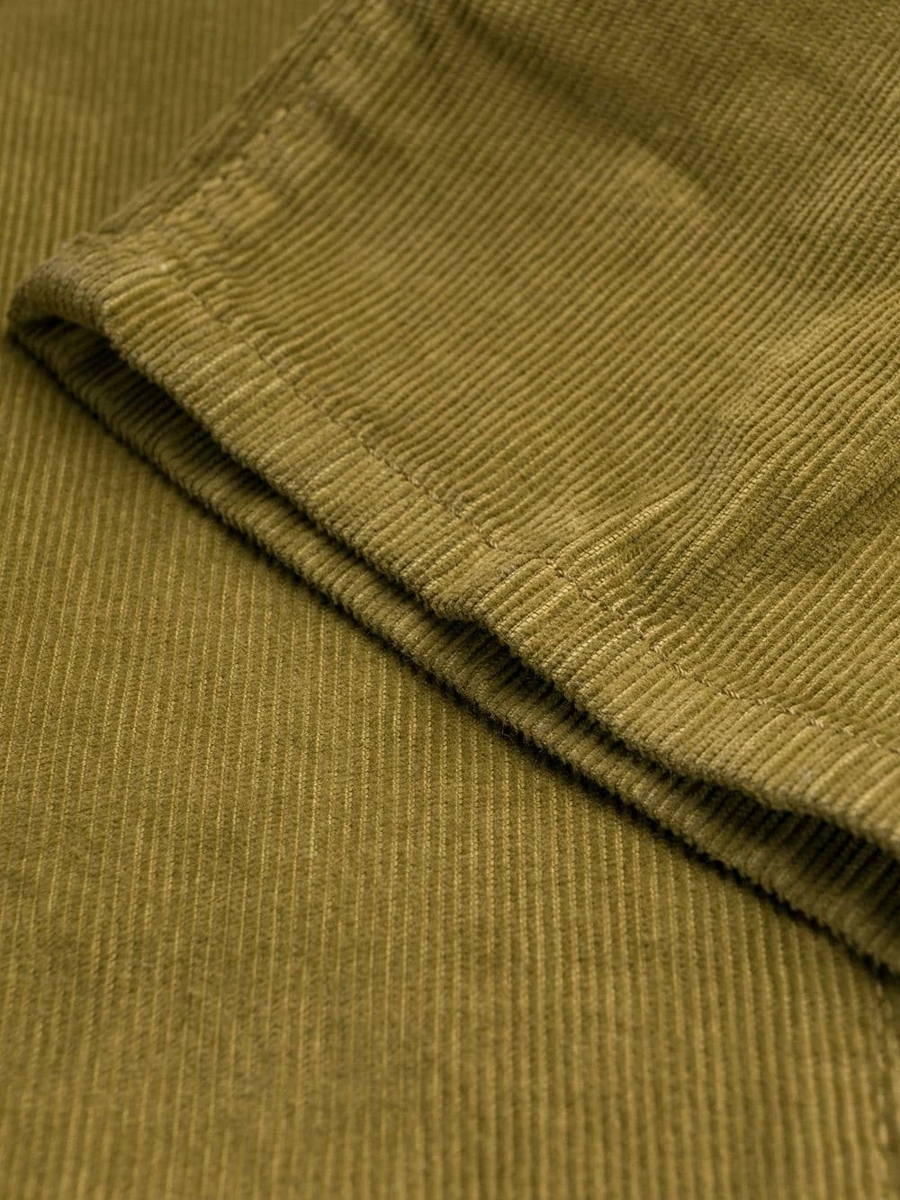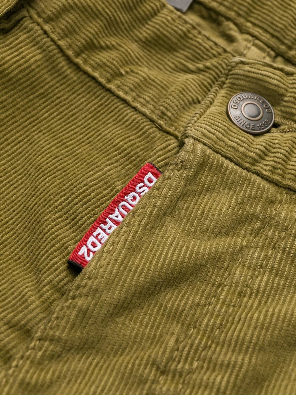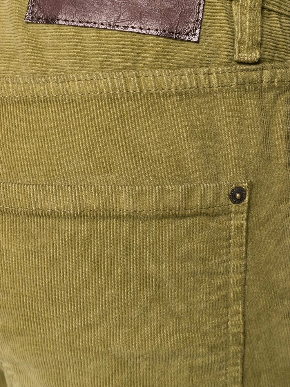Velours côtelé, patch logo sur le côté, boutonnière sur le devant, passants de ceinture, 5 poches classiques. Couleur : vert.