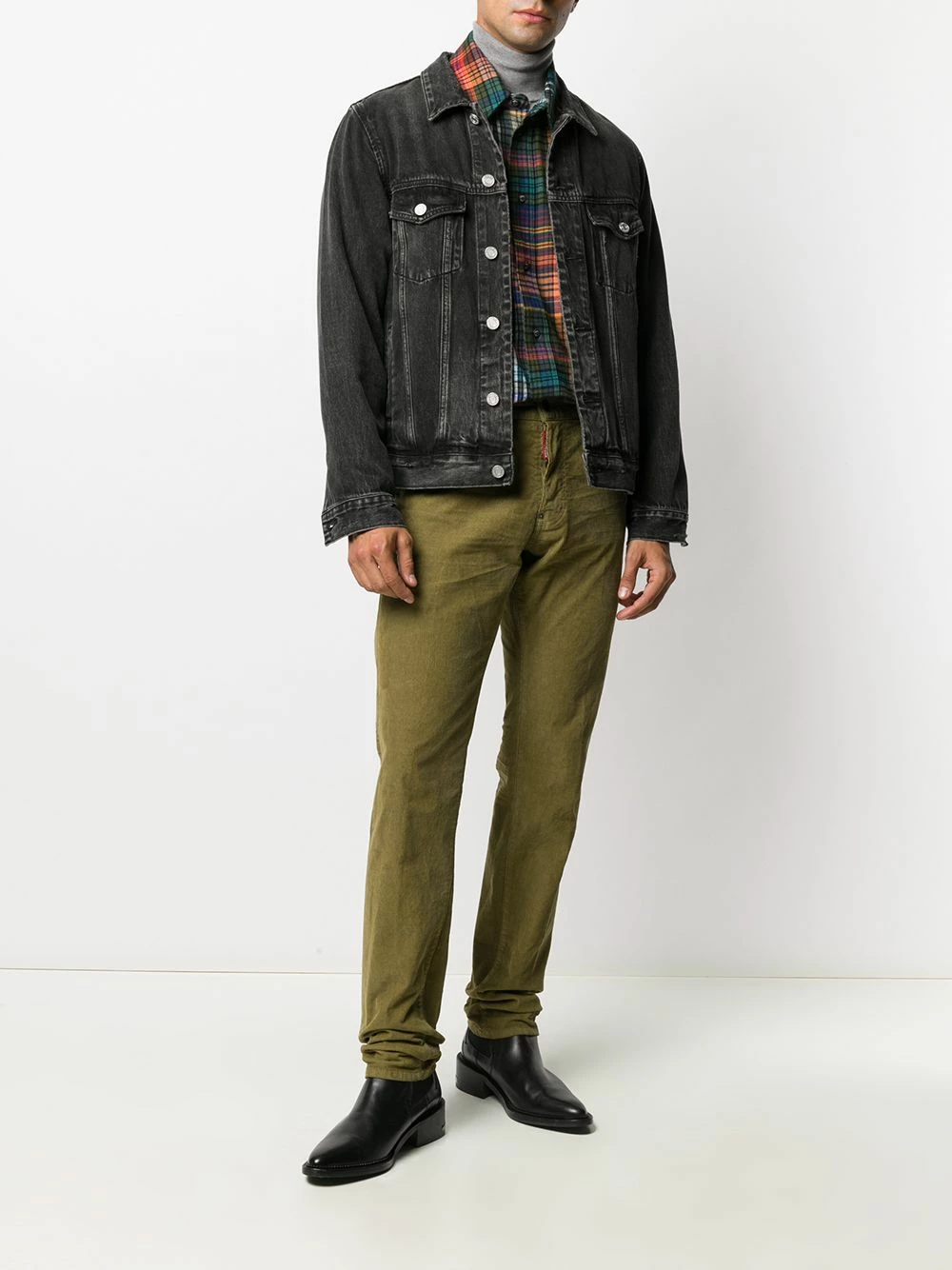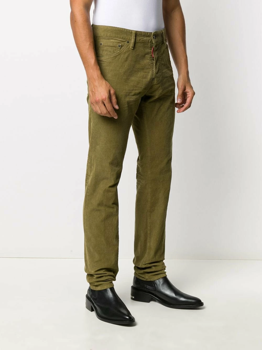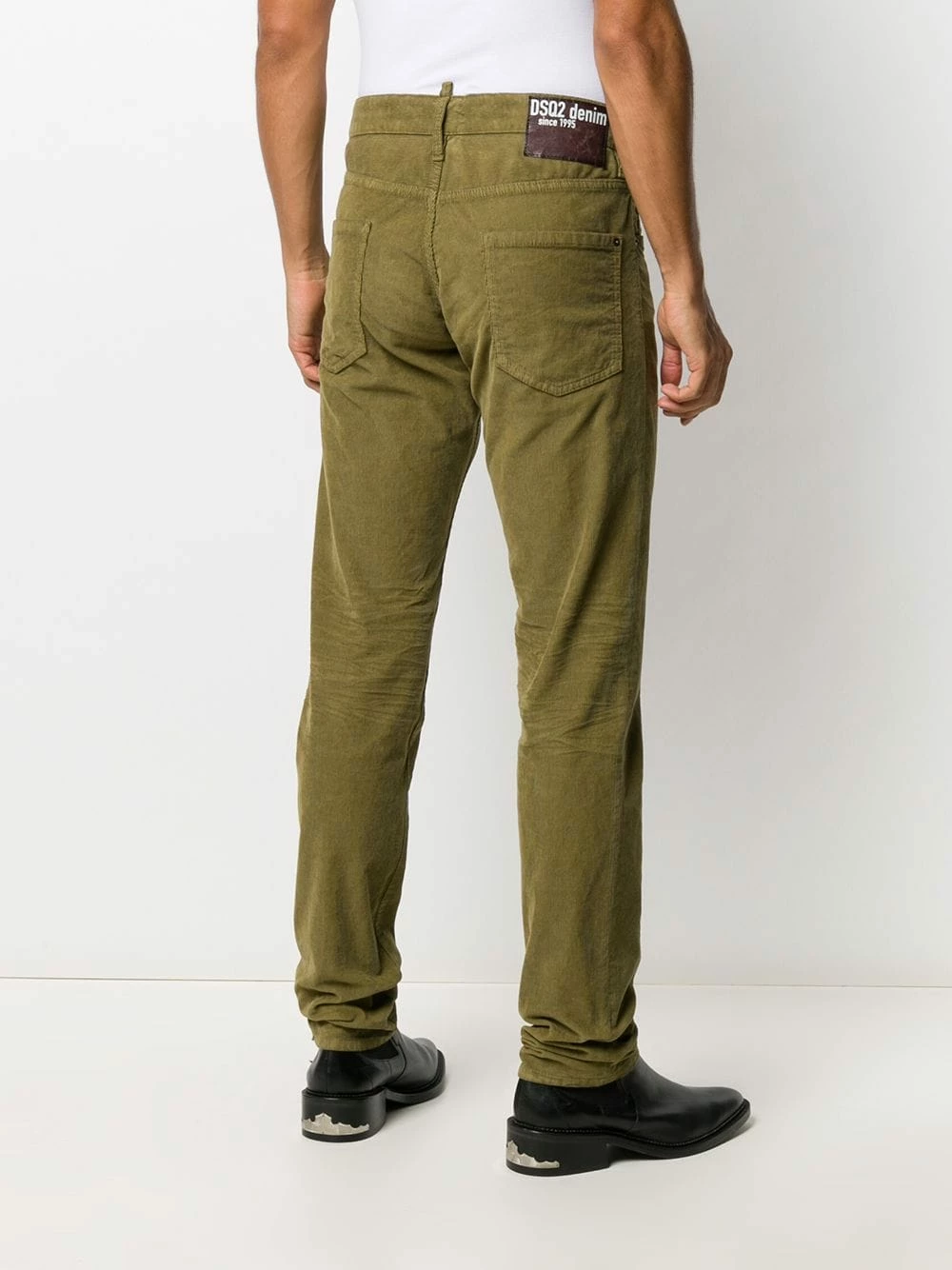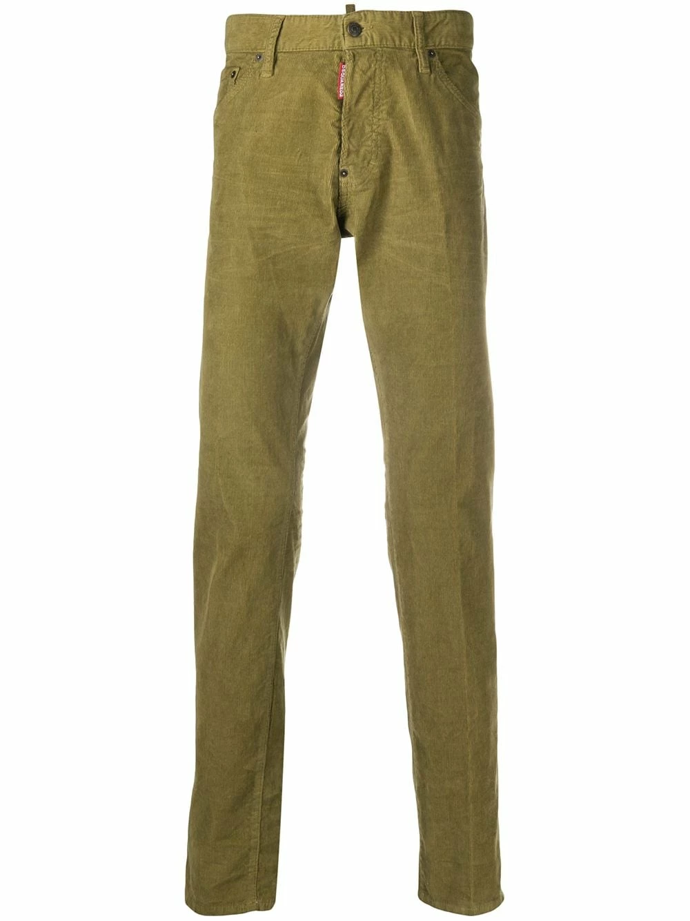 Velours côtelé, patch logo sur le côté, boutonnière sur le devant, passants de ceinture, 5 poches classiques. Couleur : vert.
