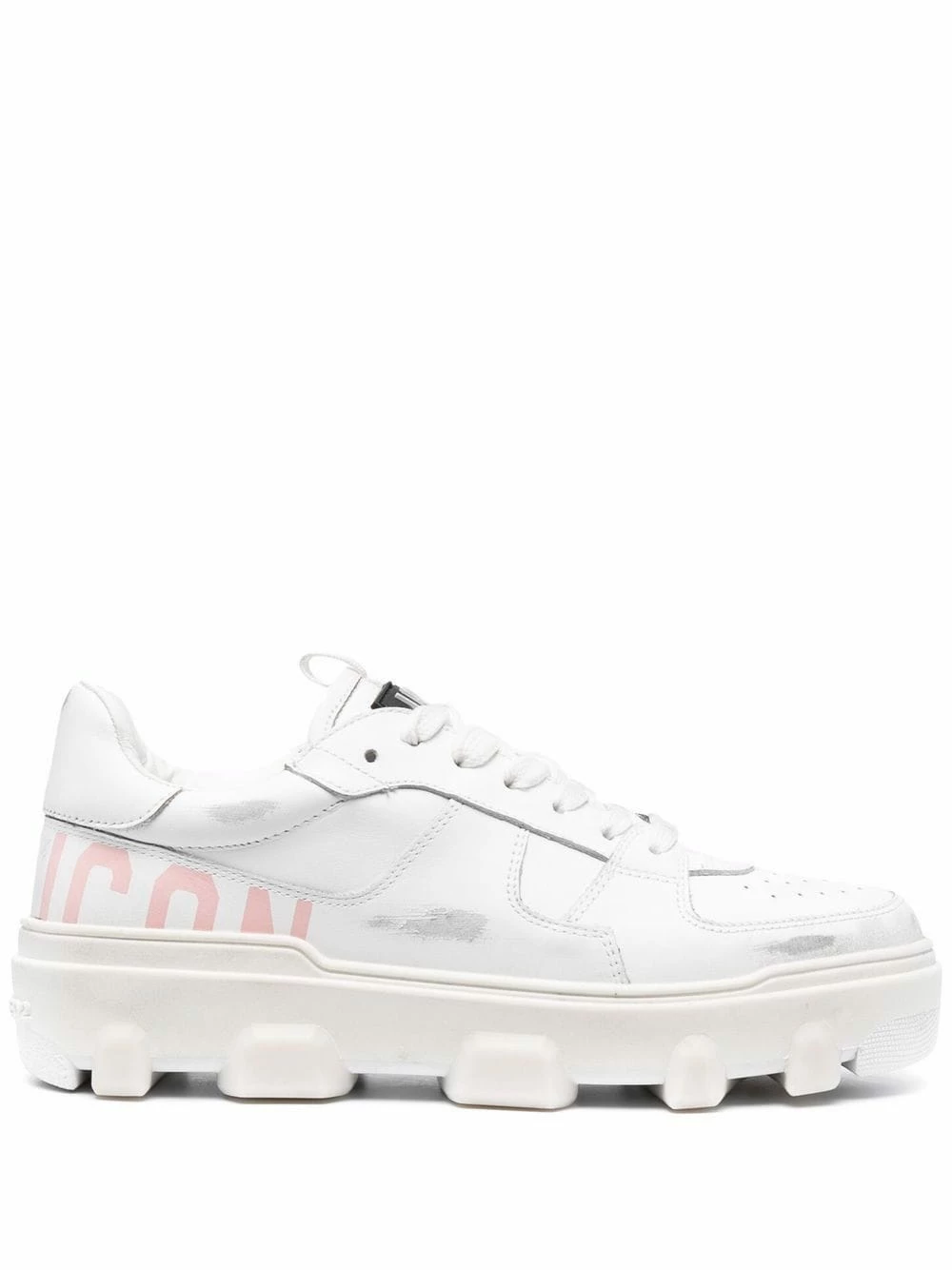 Motif Icon signature, languette à patch logo, détails de perforations, fermeture à lacer sur le devant, semelle crantée en caoutchouc. Couleur : blanc. Matière : cuir.