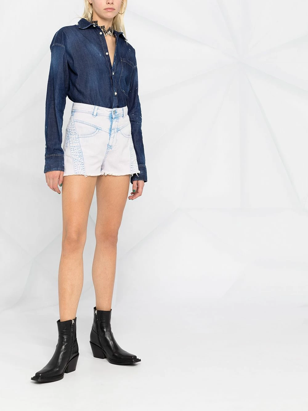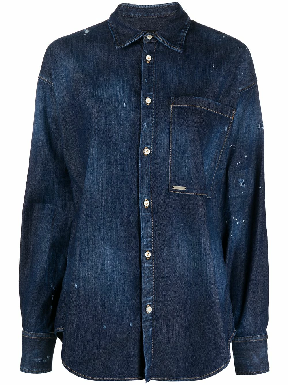 Effet délavé, finitions à effet usé, col classique, boutonnière sur le devant, poche poitrine plaquée, manches longues, poignets boutonnés, ourlet incurvé. Couleur : bleu.