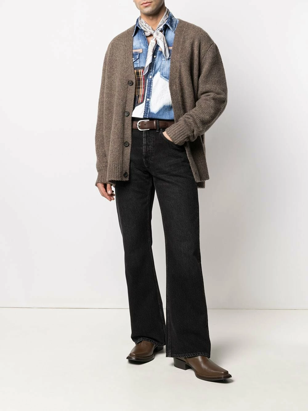 Finitions effilochées, détails de franges, manches longues, fermeture à boutons pression sur le devant, quatre poches plaquées devant. Couleur : Bleu.