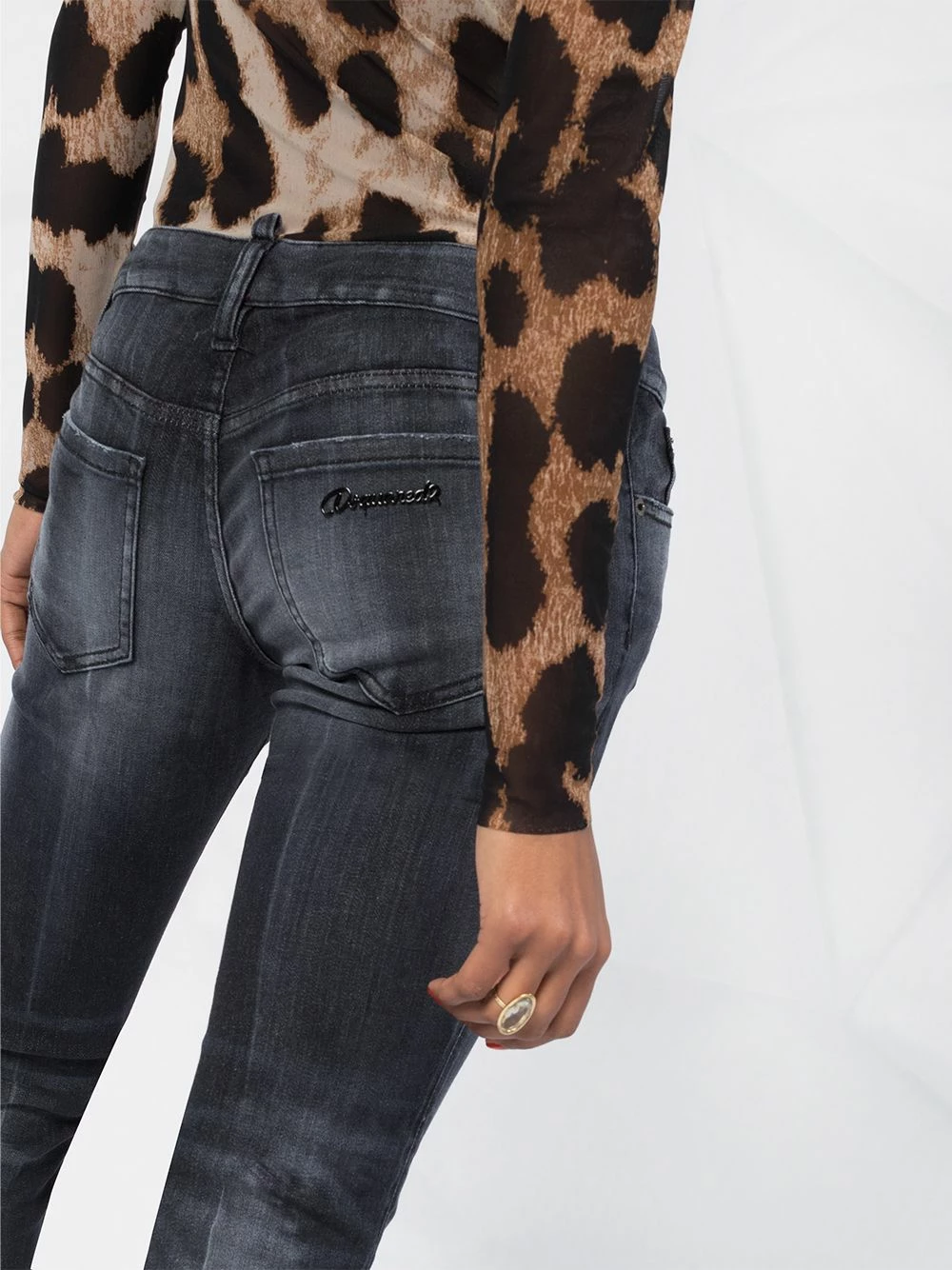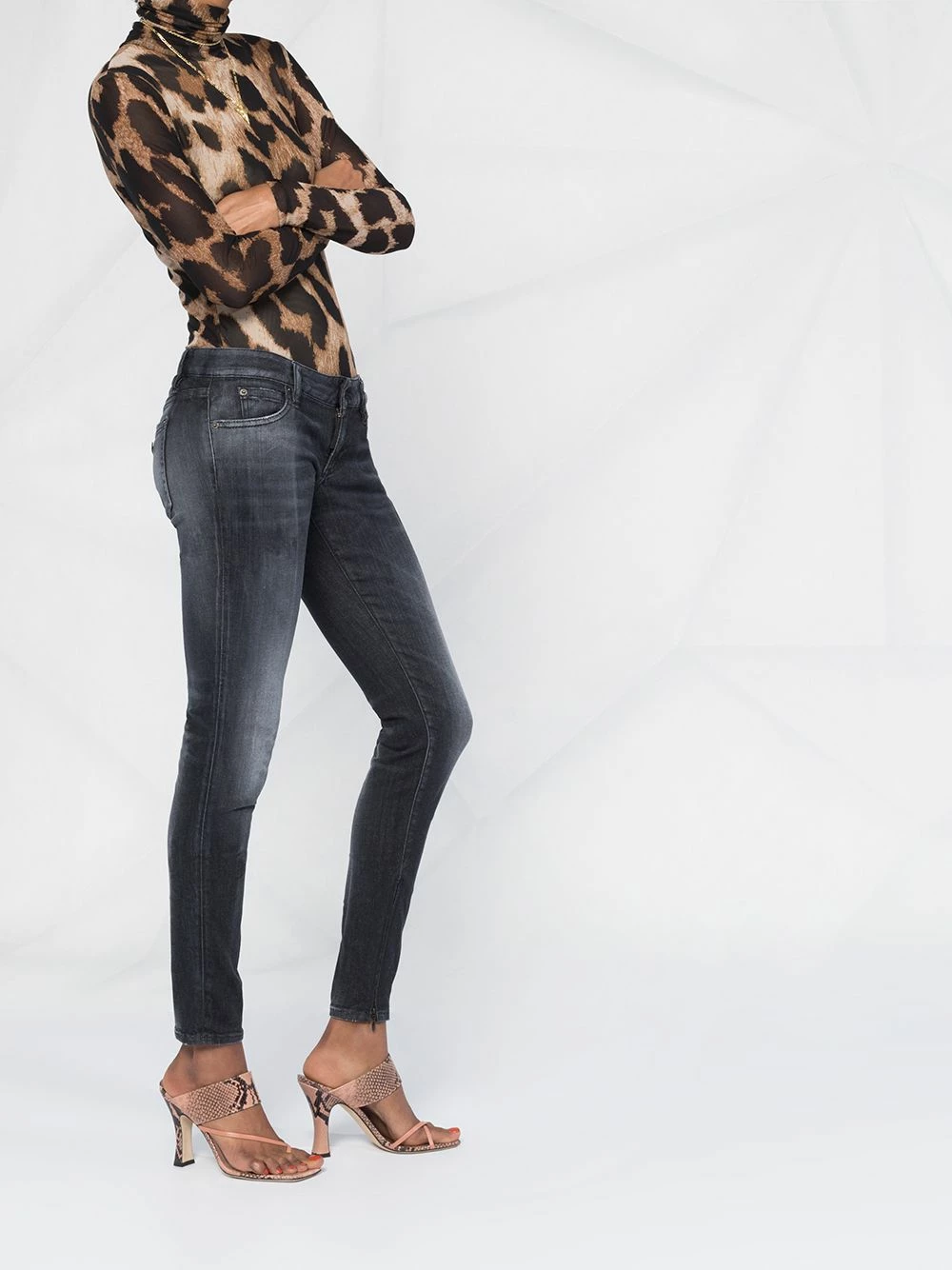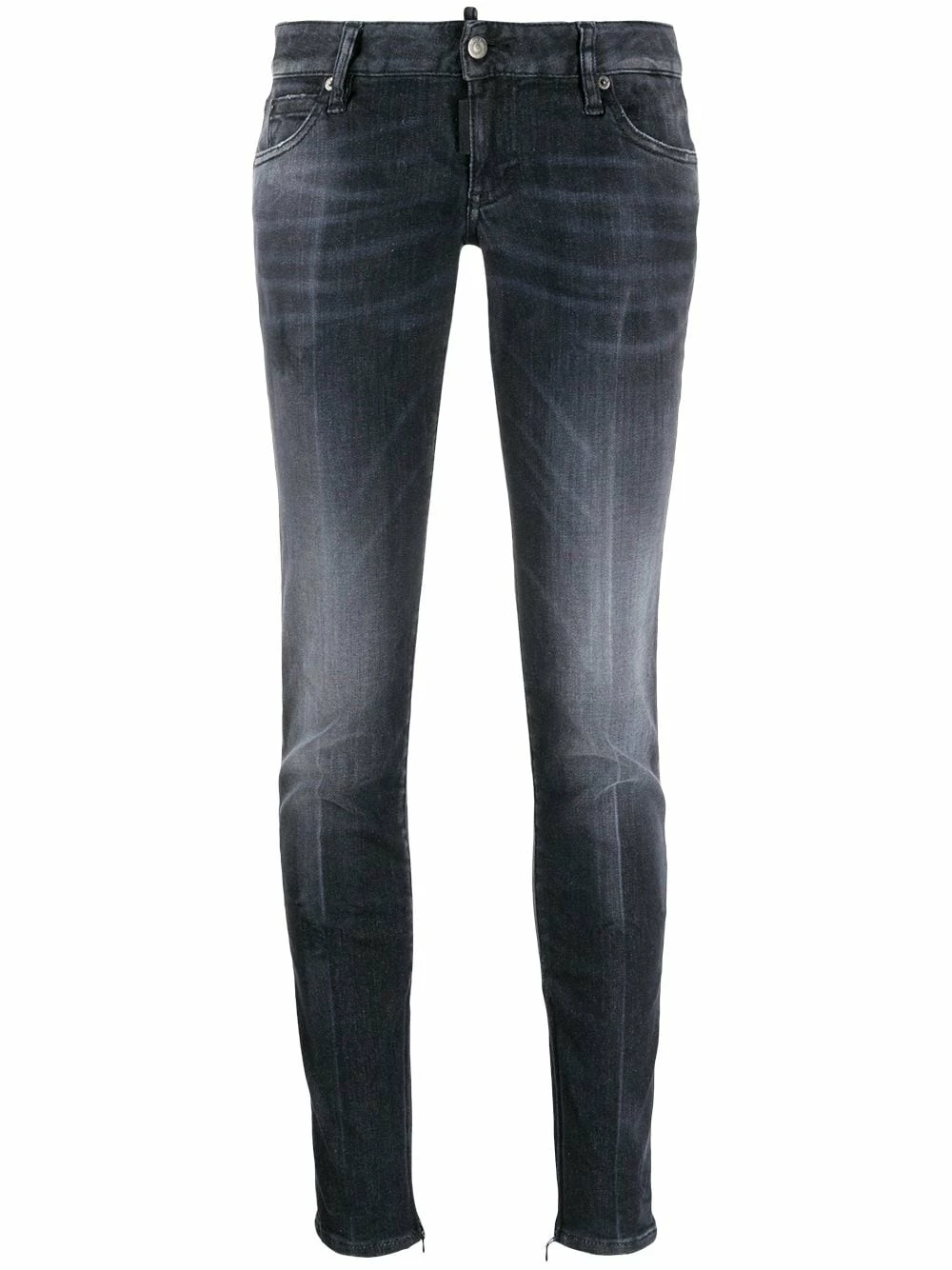 Jean skinny à détails zippés en coton Dsquared2 avec taille basse, bouton et zip, passants de ceinture, coupe classique cinq poches, effet délavé, plaque logo au dos, coupe skinny et zips aux chevilles. Couleur : gris.