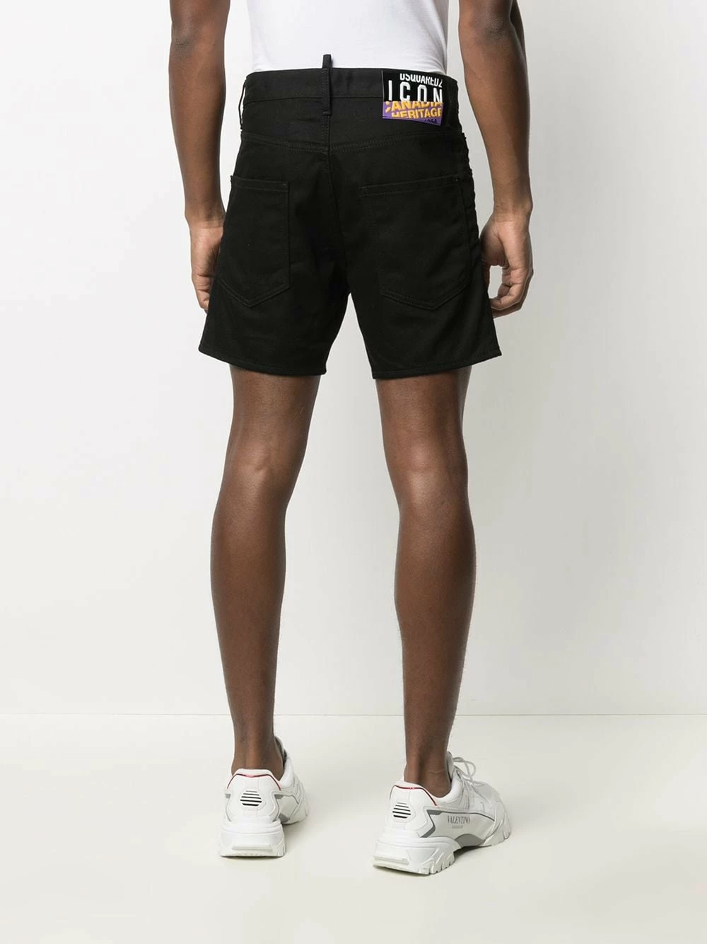 Logo imprimé sur le devant, taille mi-haute, passants de ceinture, boutonnière sur le devant, 5 poches classiques, ourlet droit. Couleur : noir. Matière : coton.