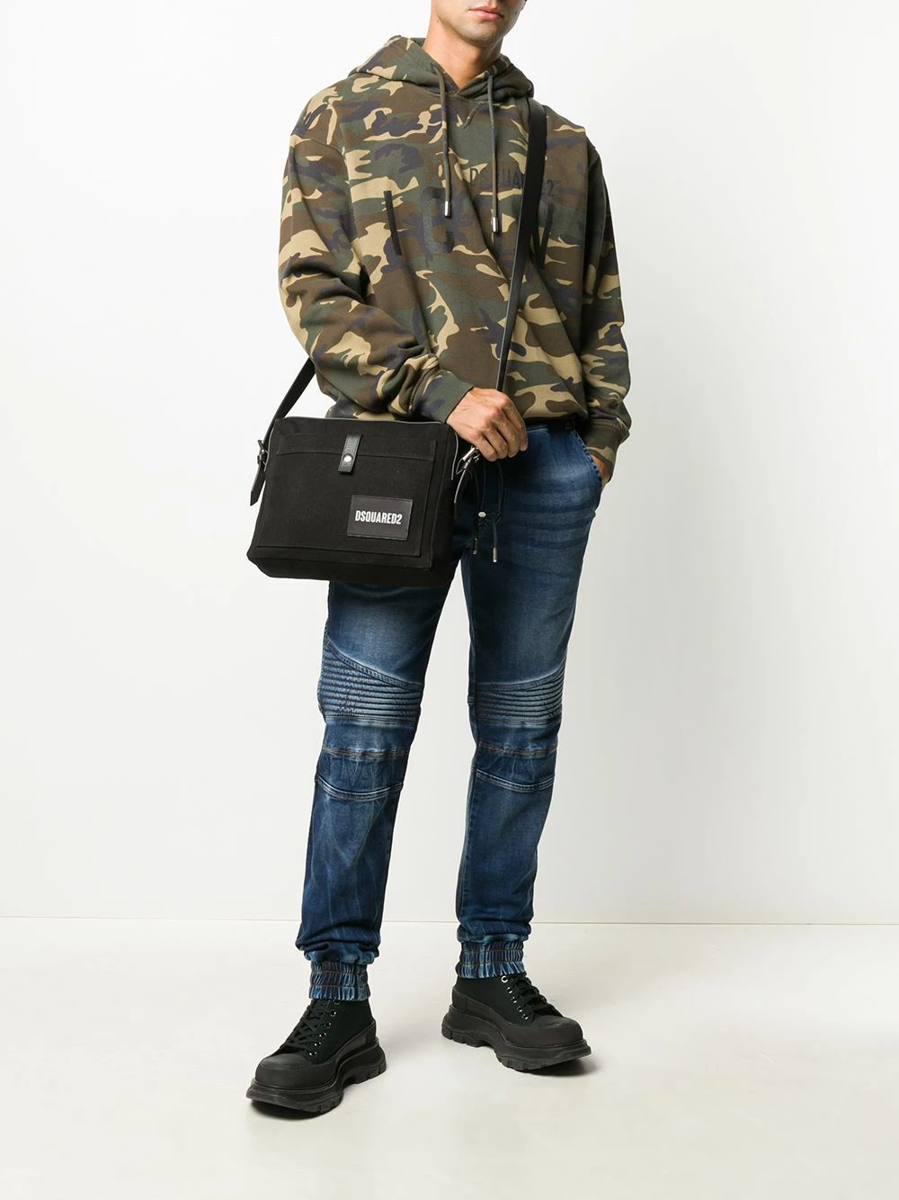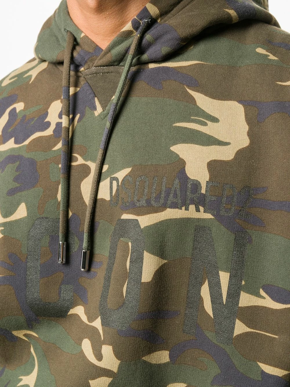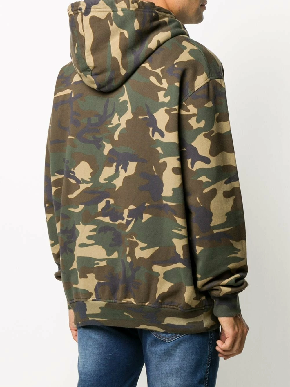 Imprimé camouflage, logo imprimé à la poitrine, capuche classique, manches longues. Matière : coton.
