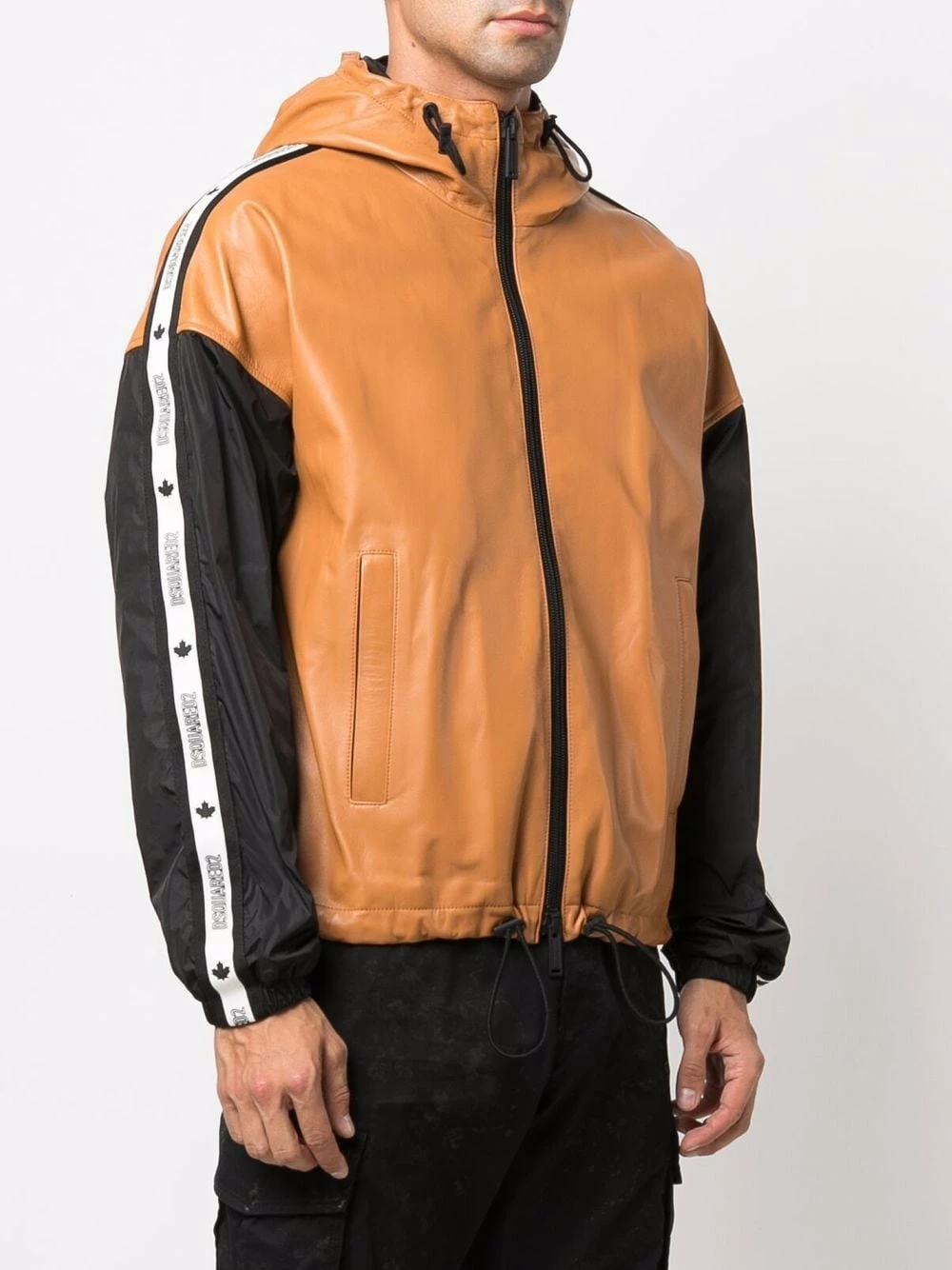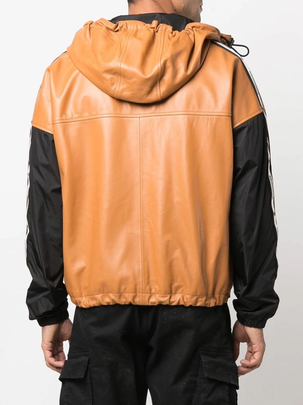 Design à empiècements, finition à bande logo, capuche classique, fermeture zippée devant, effet d’épaules descendues, manches longues, poches latérales fendues, ourlet à lien de resserrage. Matière : peau de mouton.