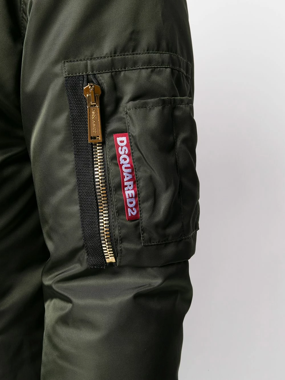Veste bomber à design matelassé Dsquared2 avec encolure ronde nervurée, manches longues, ourlet et poignets nervurés, zipped pocket at the sleeve, poches devant, fermeture zippée à double sens et intérieur matelassé.