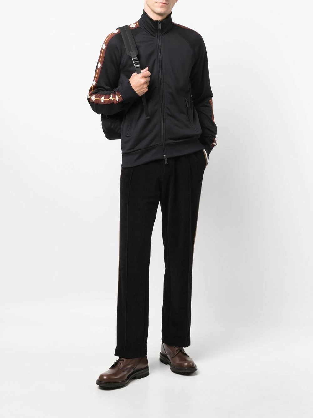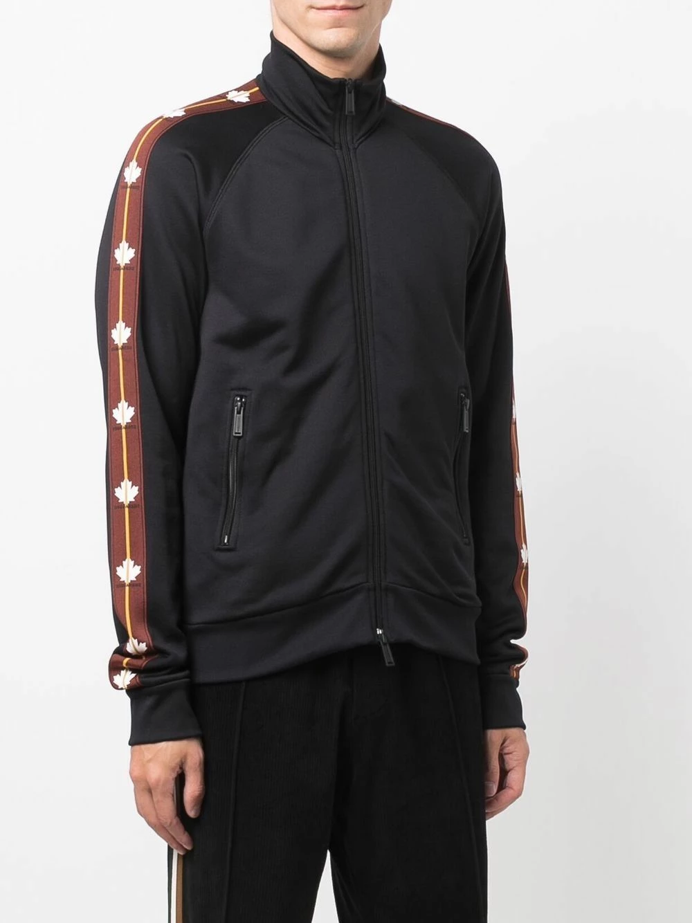 Logo imprimé sur la manche, encolure ronde, fermeture zippée devant, manches longues, deux poches latérales zippées. Couleur : noir. Matière : coton.