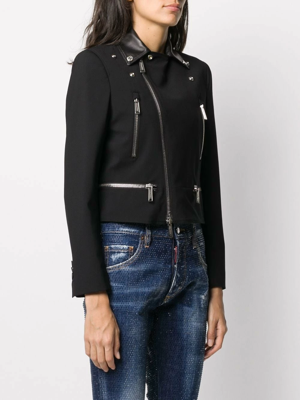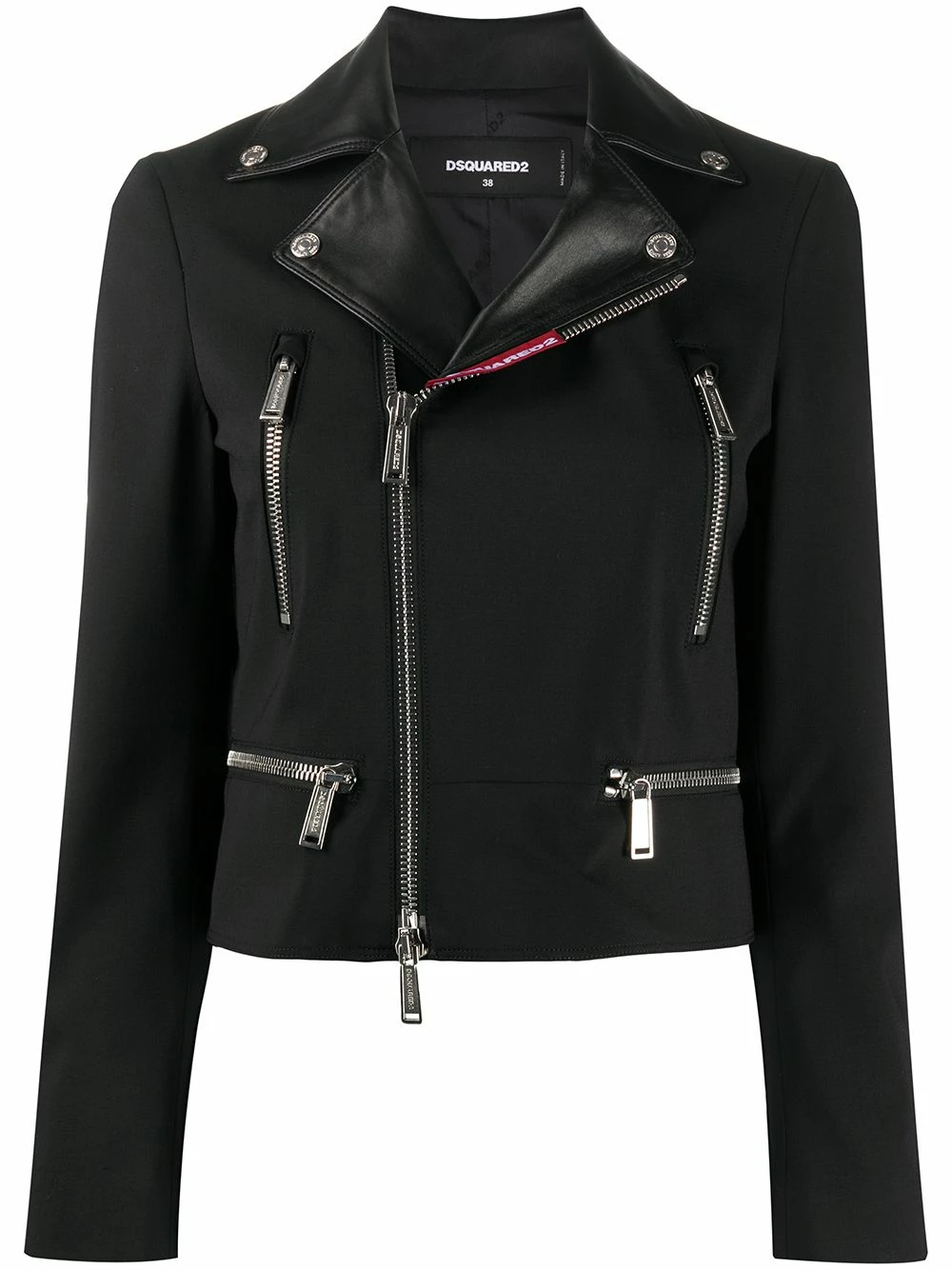 Veste de moto zippée à patch logo Dsquared2 avec col classique, étiquette logo, manches longues, poignets à faux boutons, finitions argentées, poches devant zippées et fermeture zippée arrière.