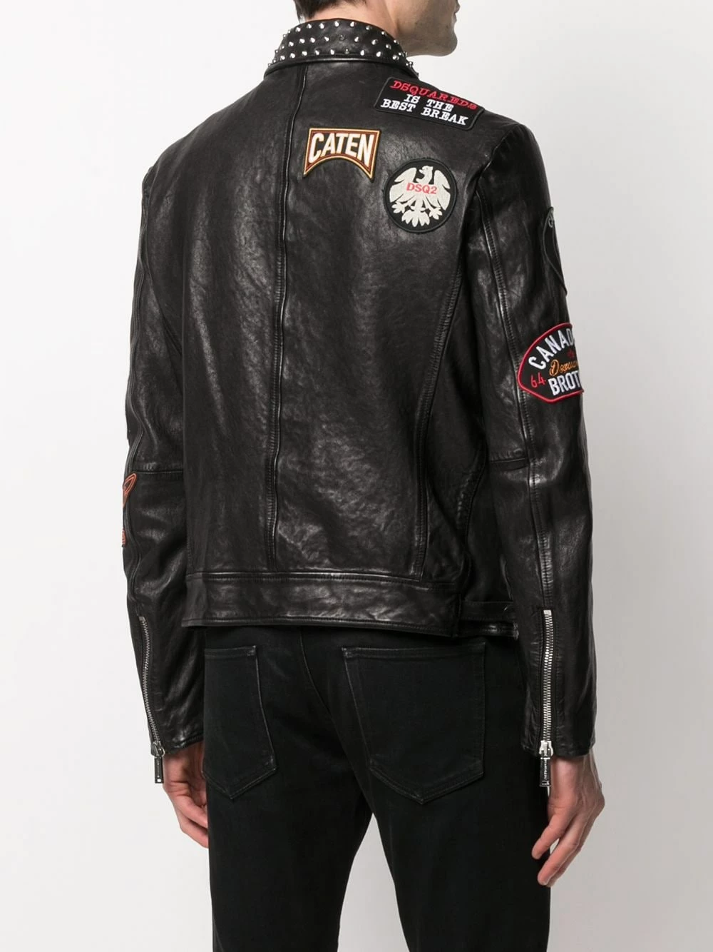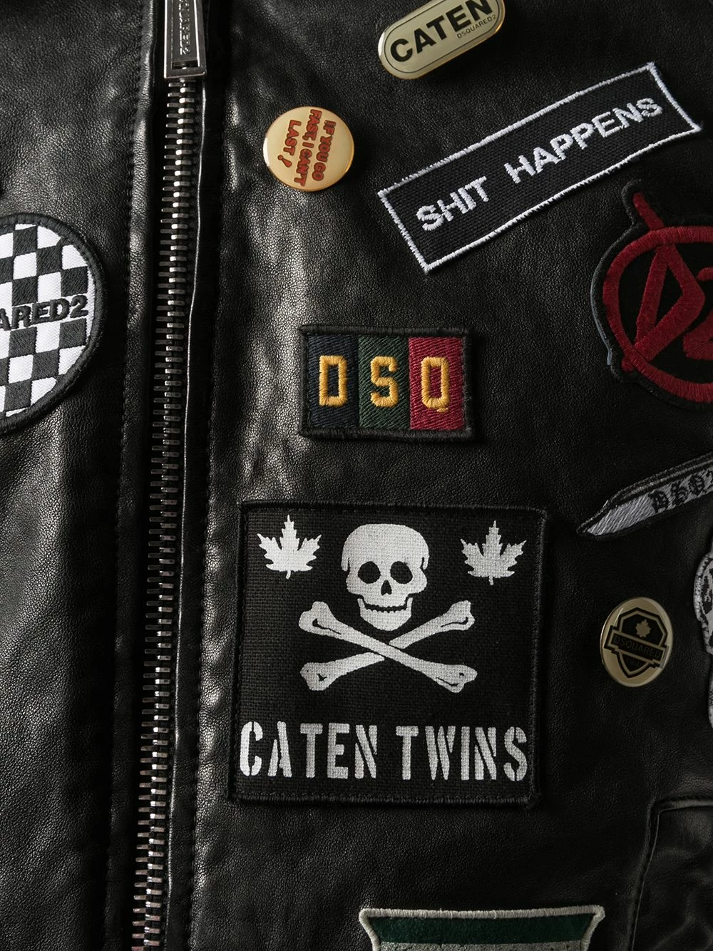 Détails de clous argentés, design patchwork, fermeture zippée devant, manches longues, poignets zippés, deux poches passepoilées avant, ourlet droit. Couleur : Noir.