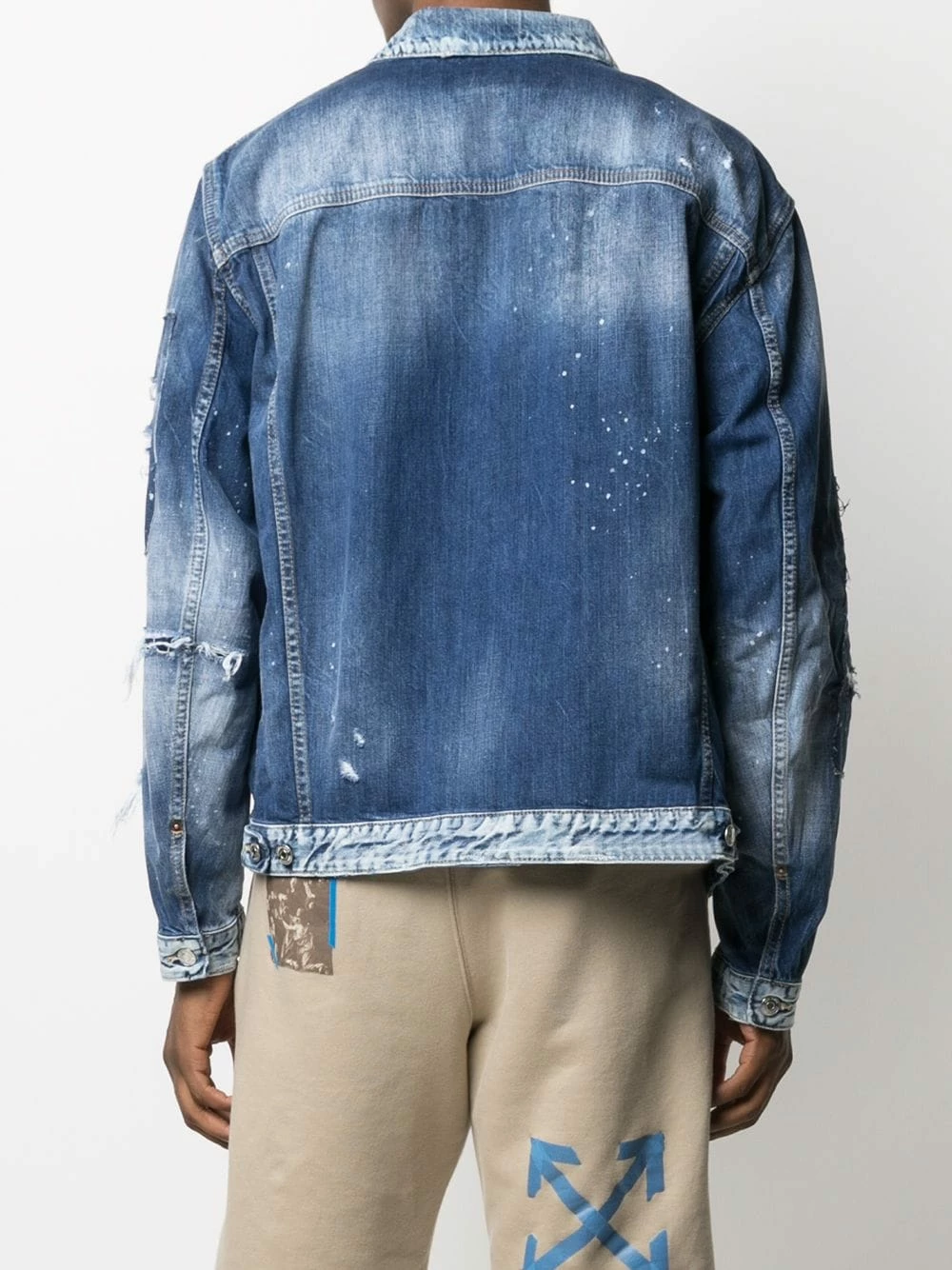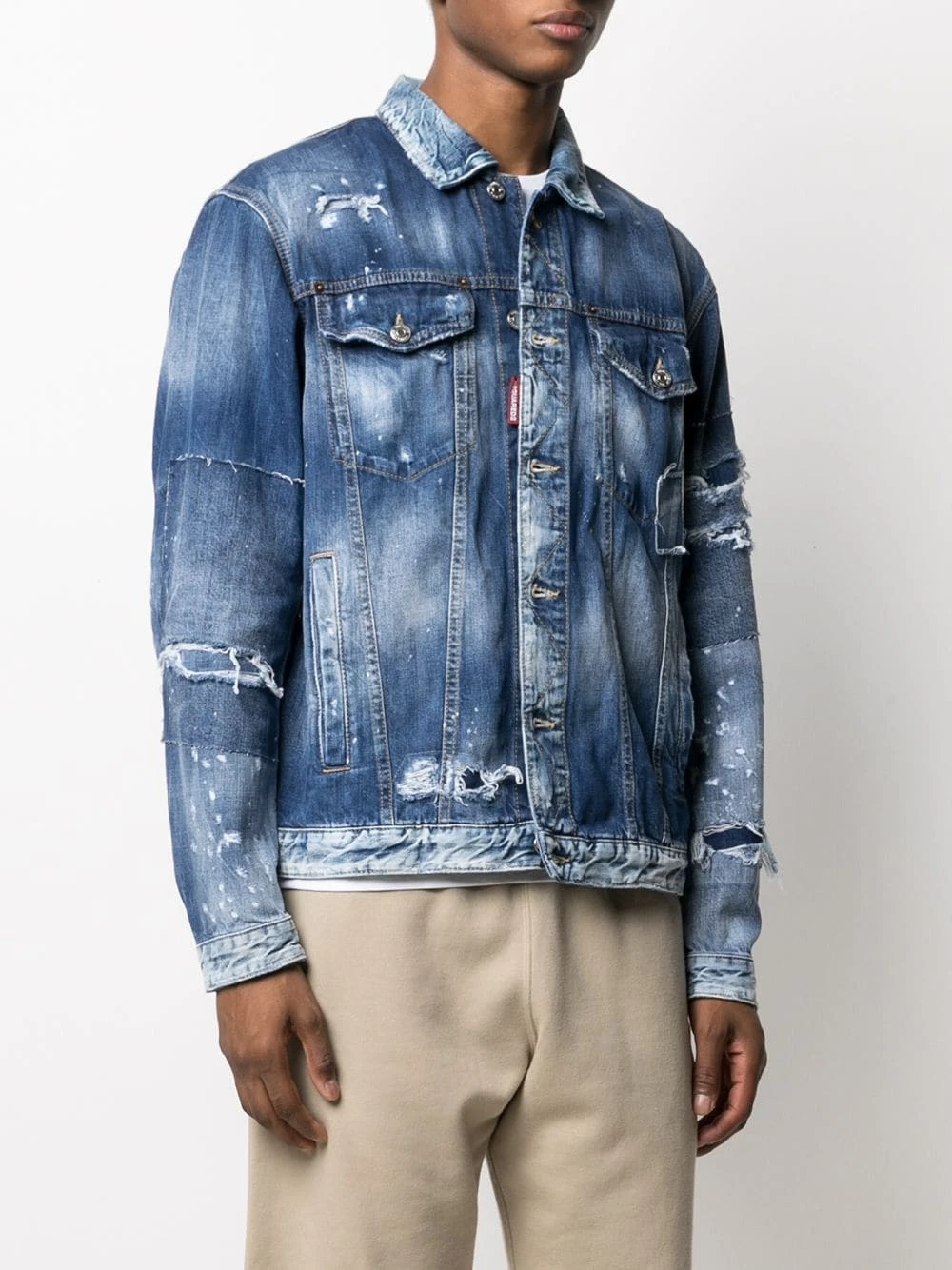 Boutonnière sur le devant, manches longues, poches devant à rabat, effet usé, effet délavé. Couleur : Bleu. Matière : coton.