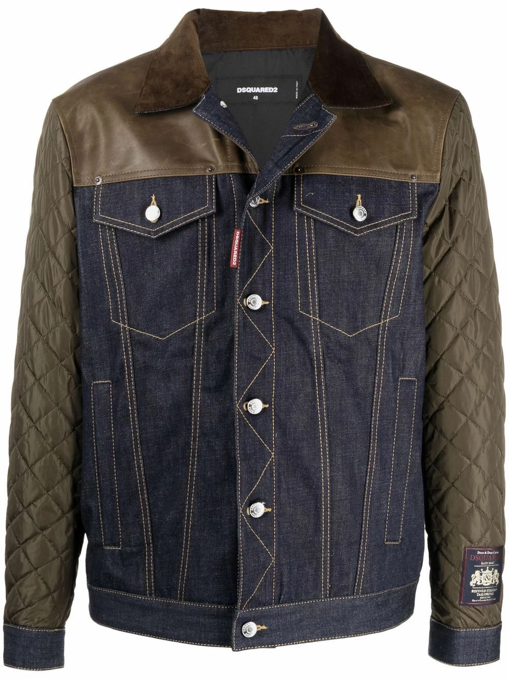 Col classique, boutonnière sur le devant, deux poches poitrine à rabat, manches longues, design à empiècements, deux poches latérales fendues, patch logo sur la manche.