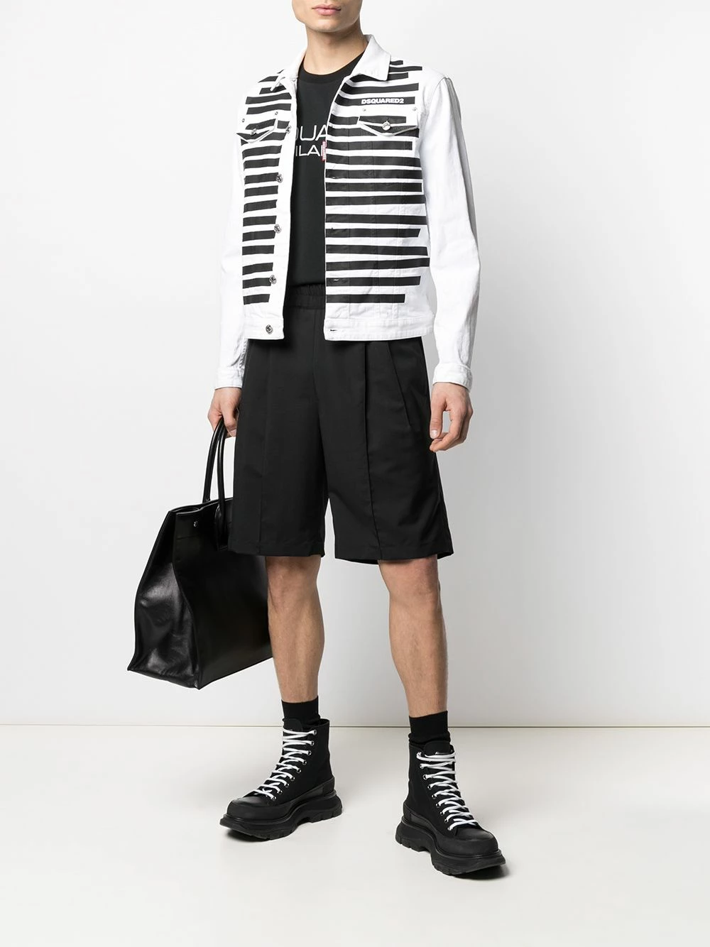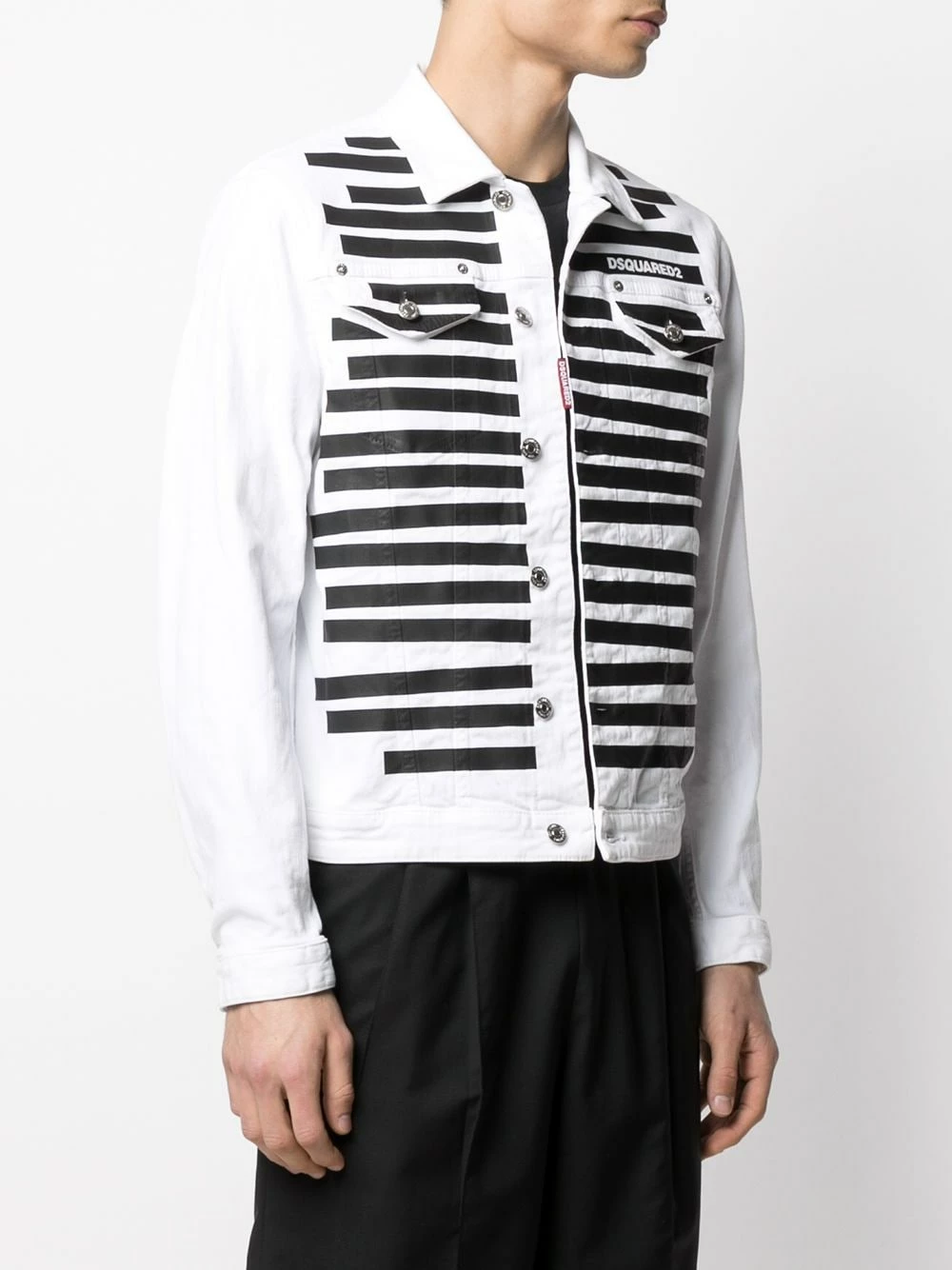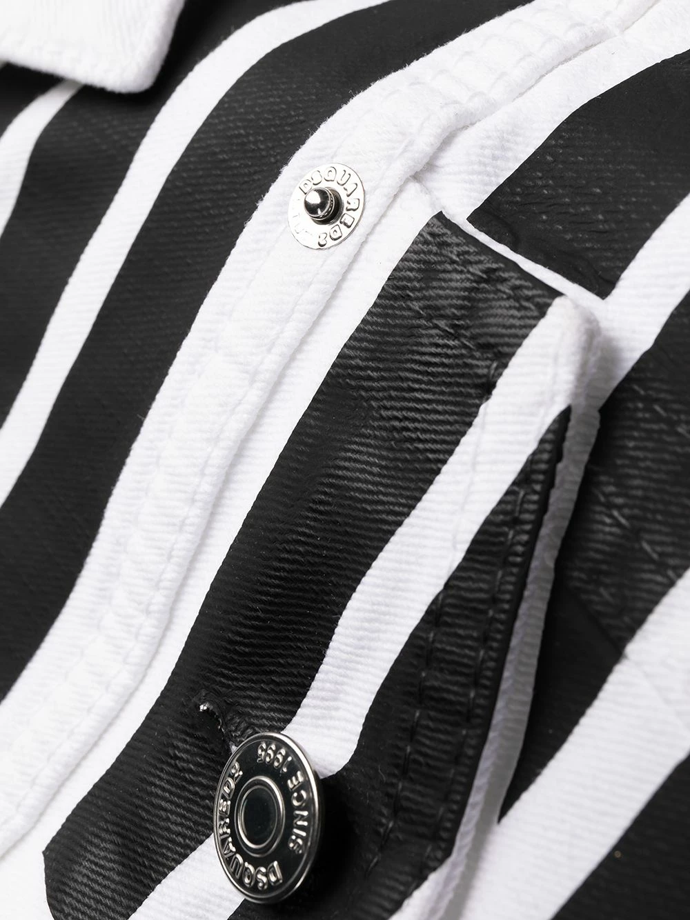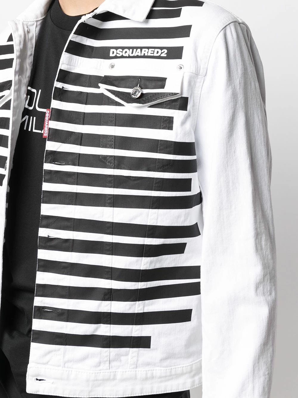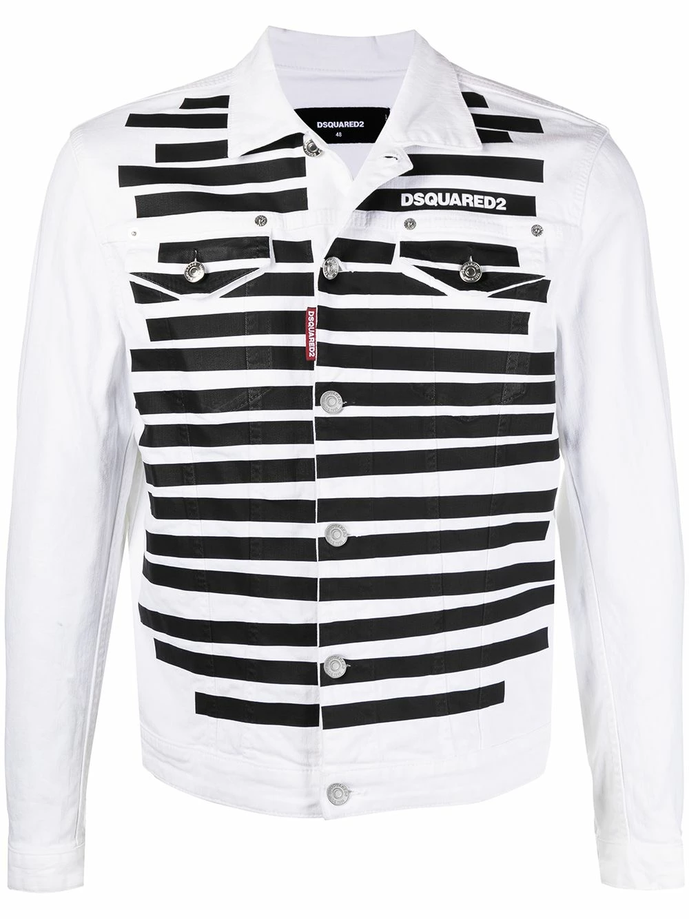 Logo imprimé à la poitrine, rayures horizontales, col italien, poches devant à rabat, boutonnière sur le devant, manches longues, manches à poignet boutonné.