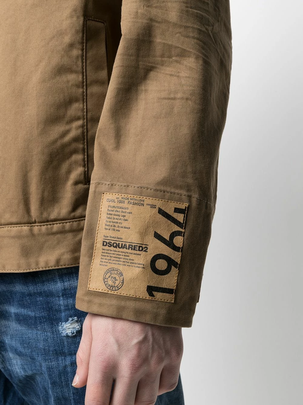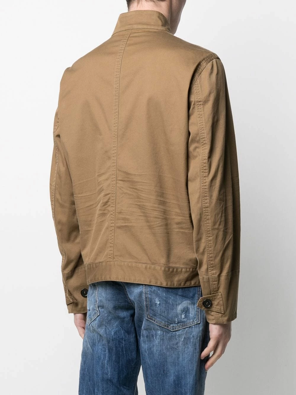 Col classique, fermeture zippée devant, poches devant à rabat, coutures ton sur ton, deux poches latérales passepoilées, manches longues, patch logo sur la manche, poignets boutonnés, ourlet droit.