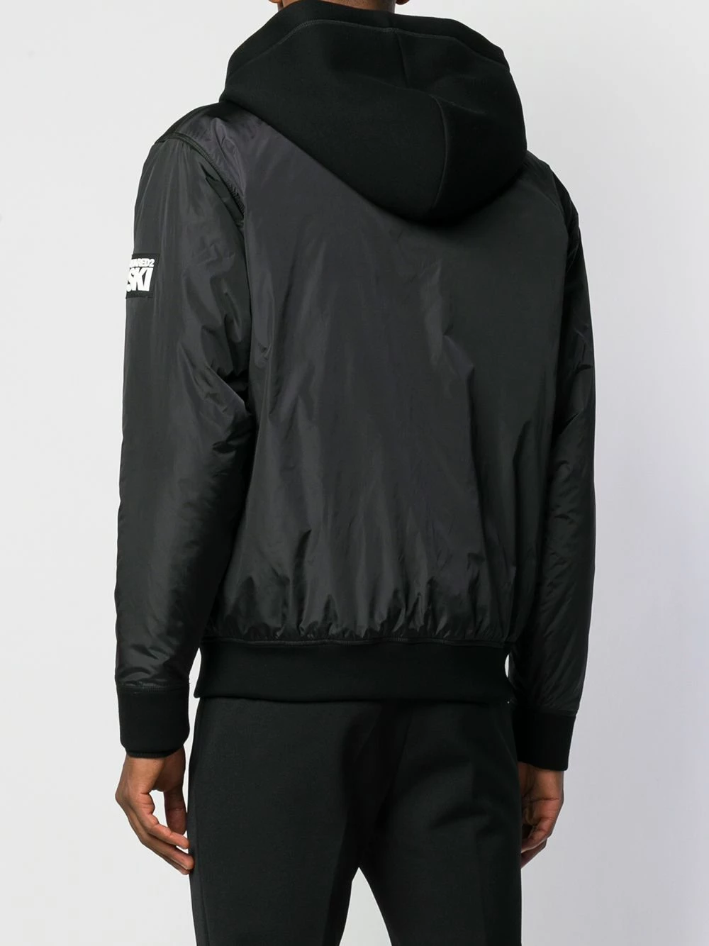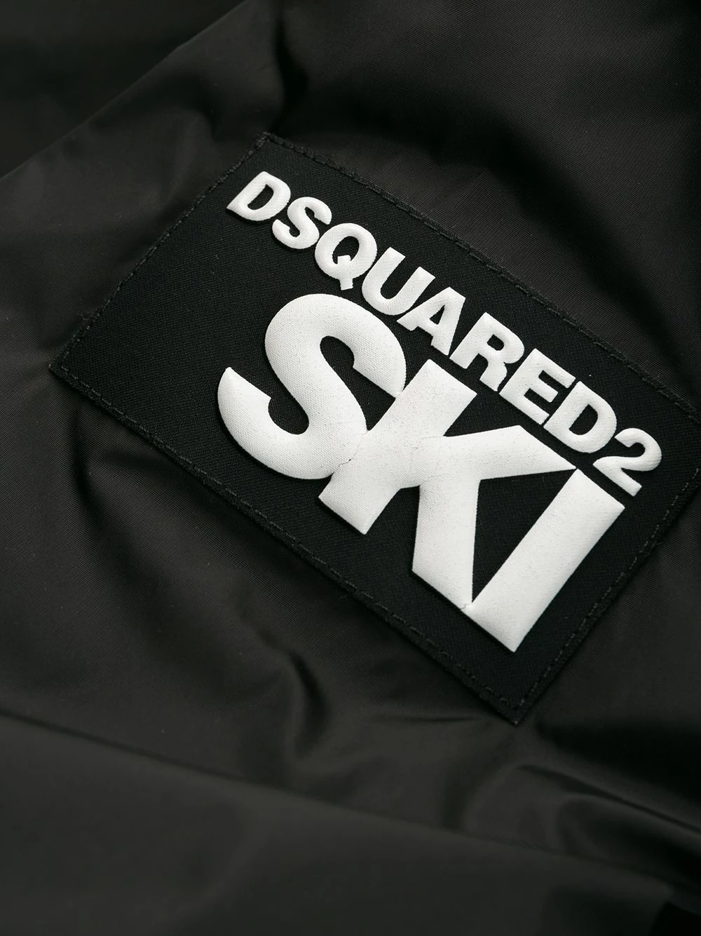 Veste zippée à capuche Ski Dsquared2 avec capuche à lien de resserrage, fermeture zippée devant, poches latérales zippées, manches longues, ourlet et poignets nervurés et patch logo sur la manche gauche. Couleur : noir.