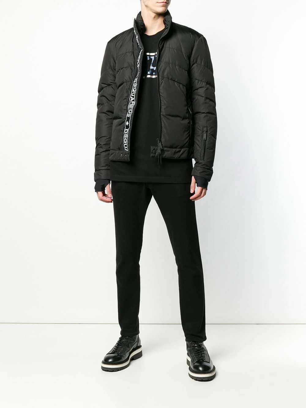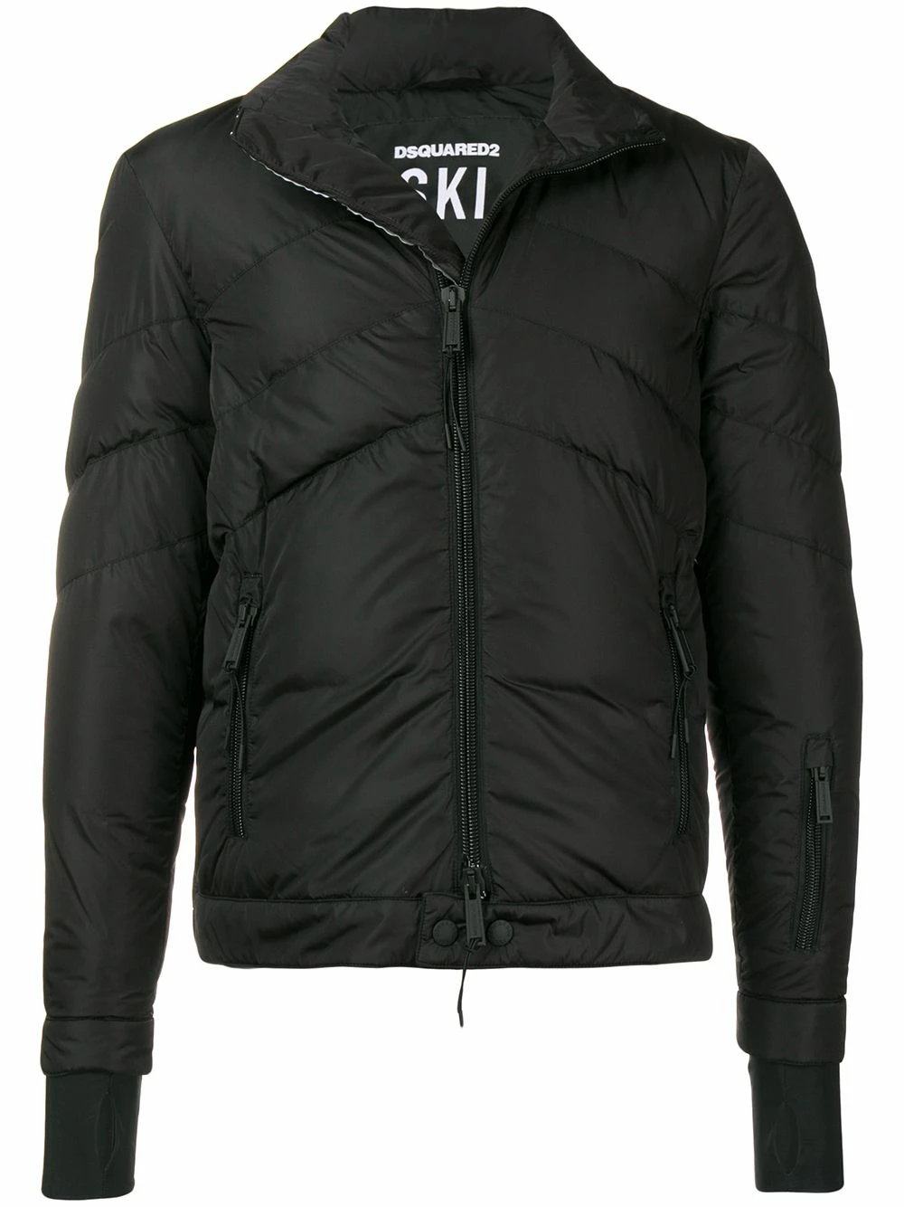 Veste zippée noire en duvet à col à revers Dsquared2 avec fermeture zippée devant, manches longues et poches latérales zippées.