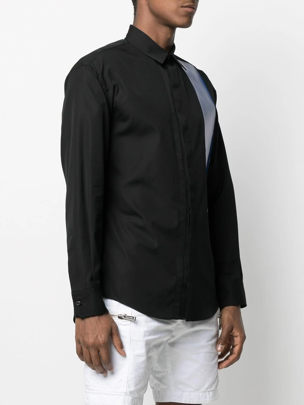 Empiècements contrastants, patch logo sur le devant, col classique, manches longues, poignets boutonnés, boutonnière dissimulée sur le devant, ourlet incurvé. Couleur : Noir. Matière : coton.