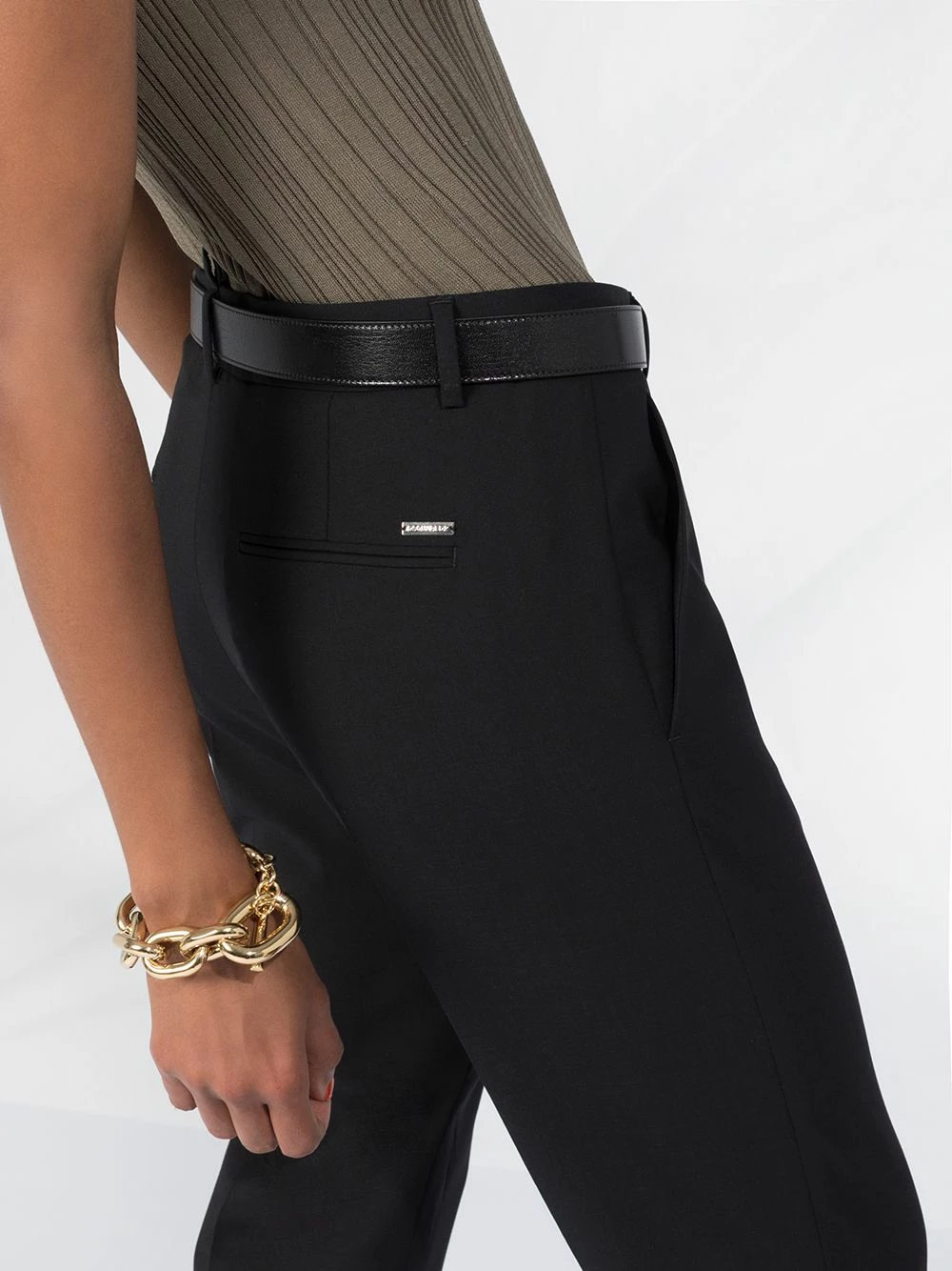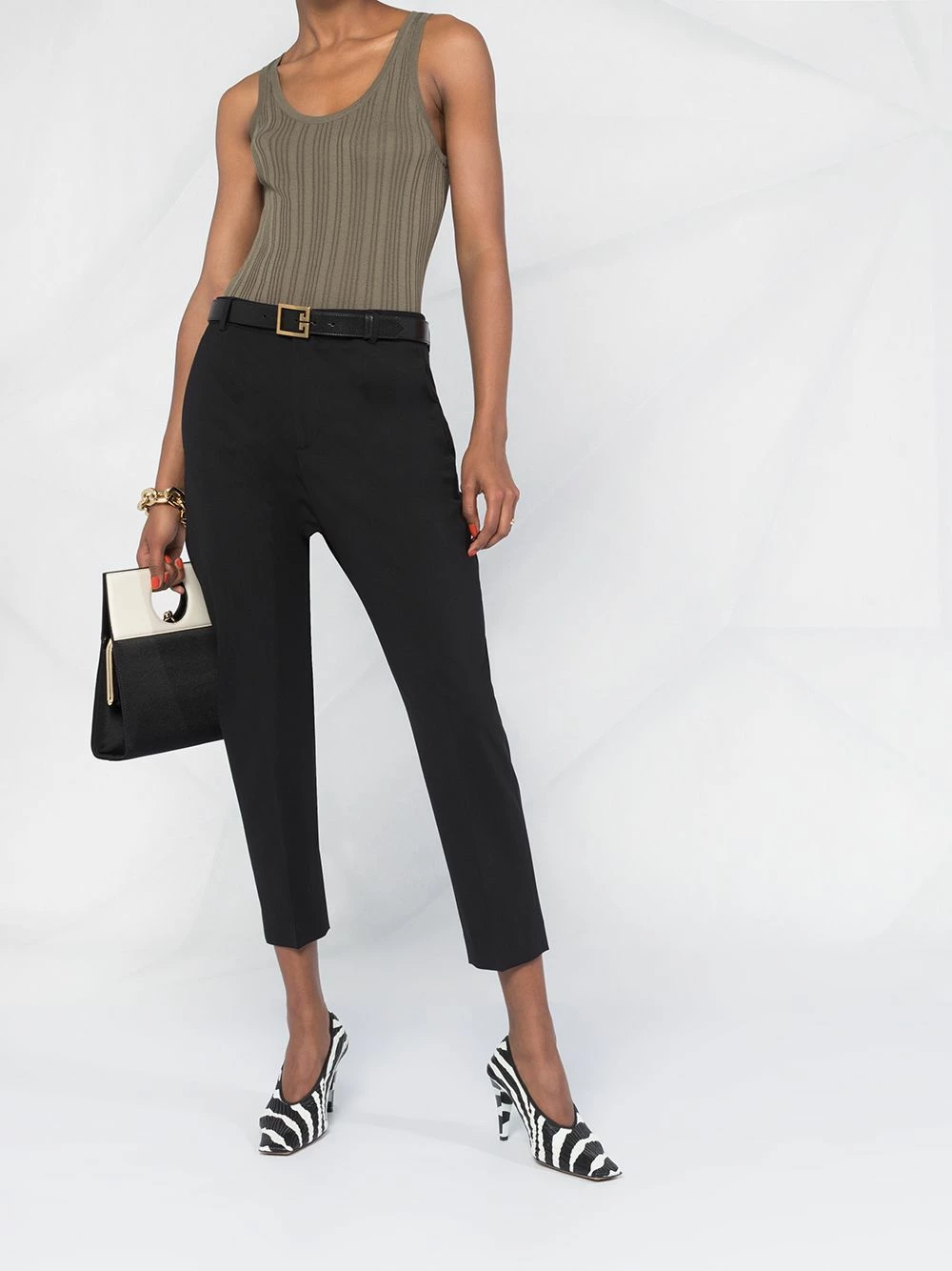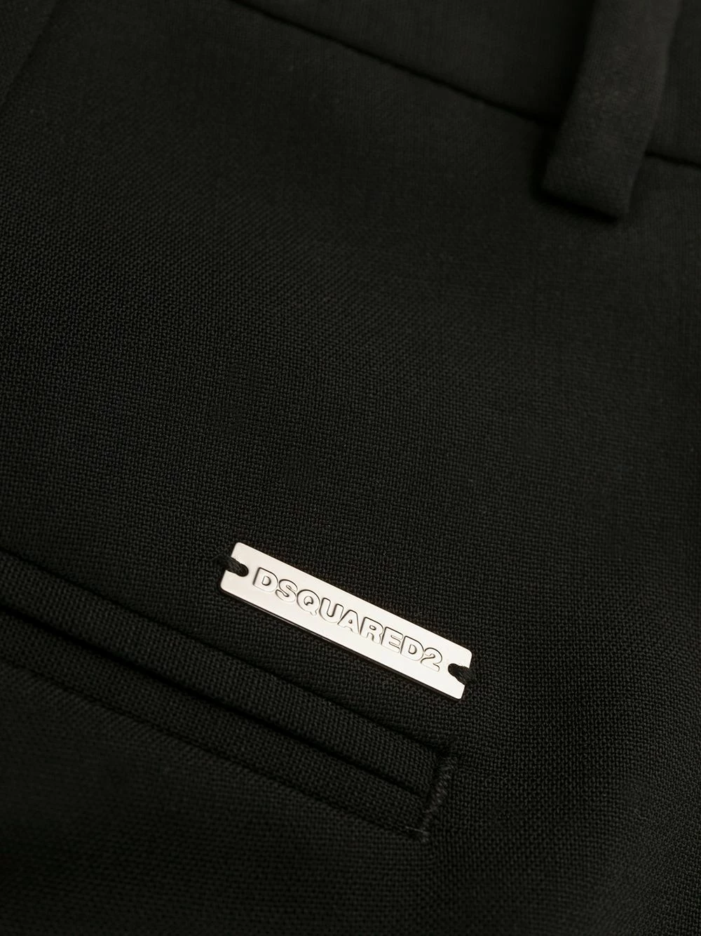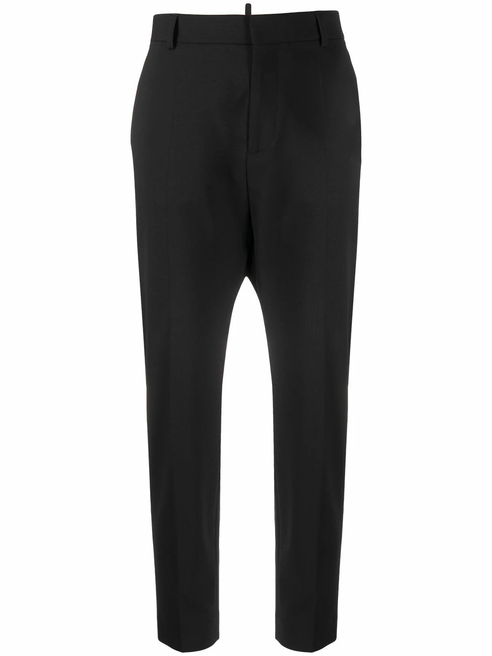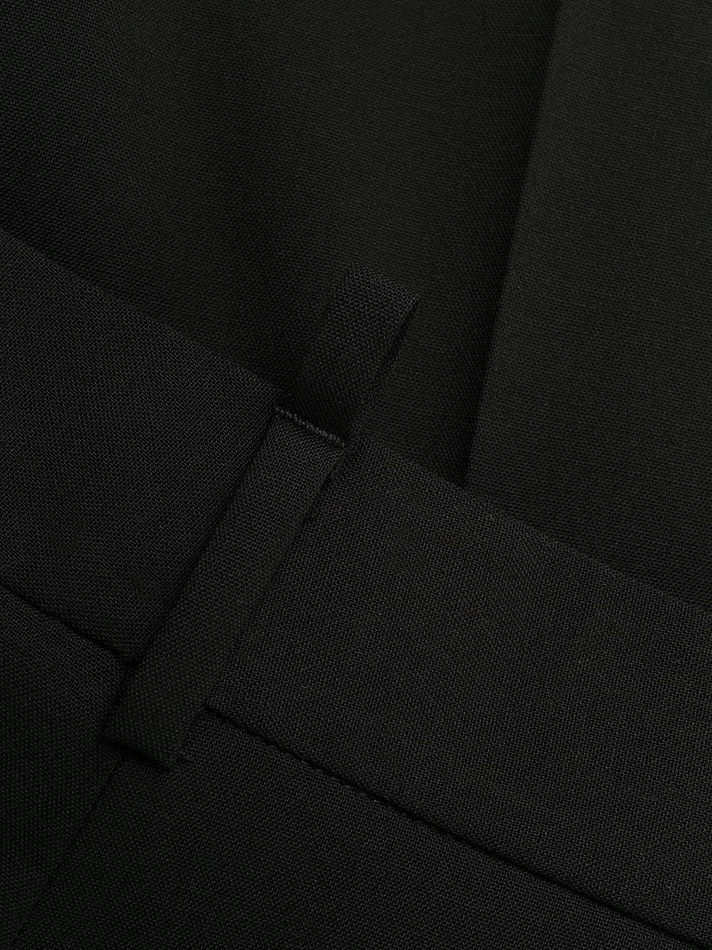 Fermeture dissimulée sur le devant, deux poches latérales passepoilées. Couleur : noir.