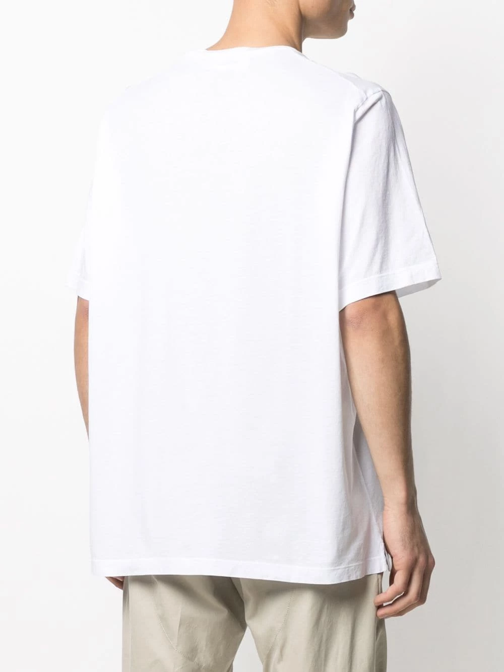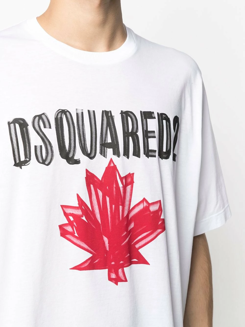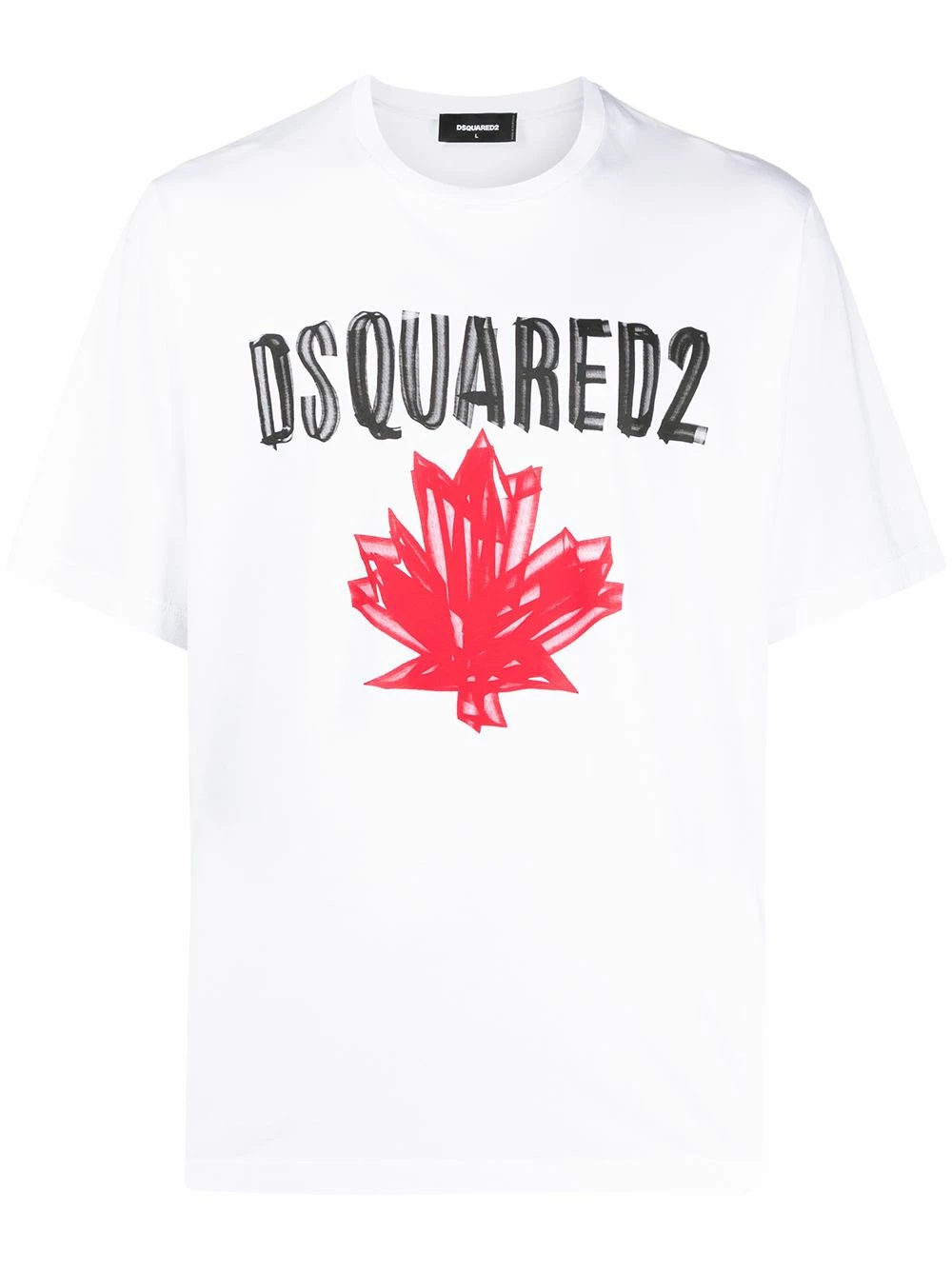 Imprimé feuillage, logo imprimé à la poitrine, encolure ras du cou, manches courtes, ourlet droit. Couleur : blanc. Matière : coton.