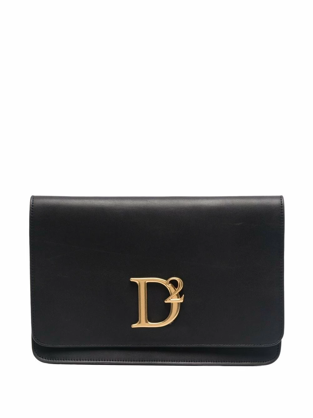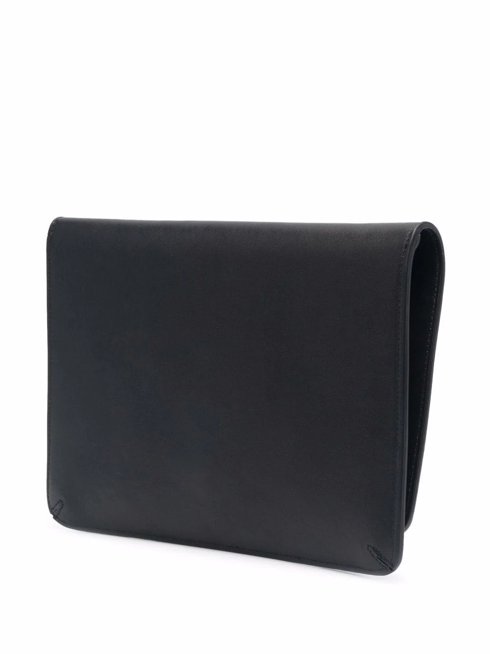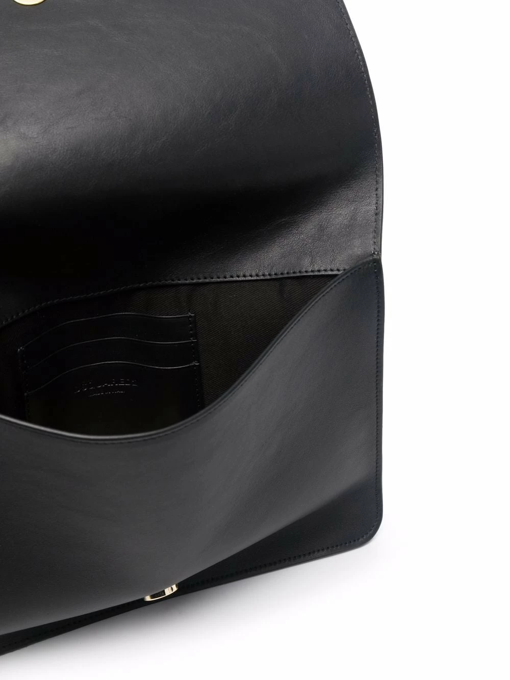 Plaque logo dorée, rabat sur le dessus, compartiment principal, compartiments intérieurs pour carte. Couleur : noir. Matière : cuir.