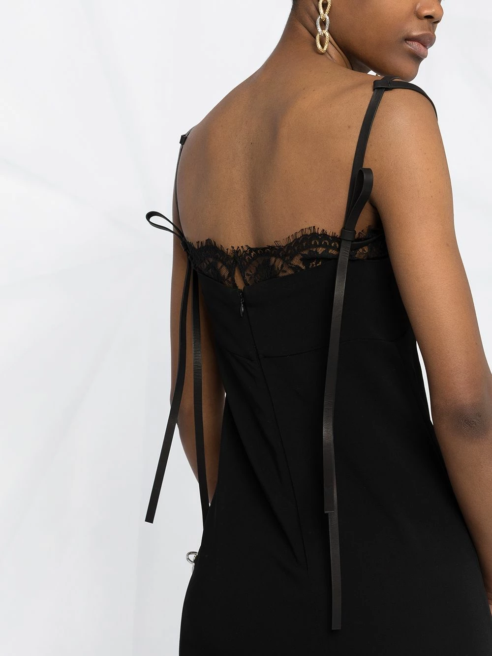 Brides portées épaules ajustables, bordure en dentelle, détail de nœud, fermeture zippée à l’arrière. Couleur : Noir.