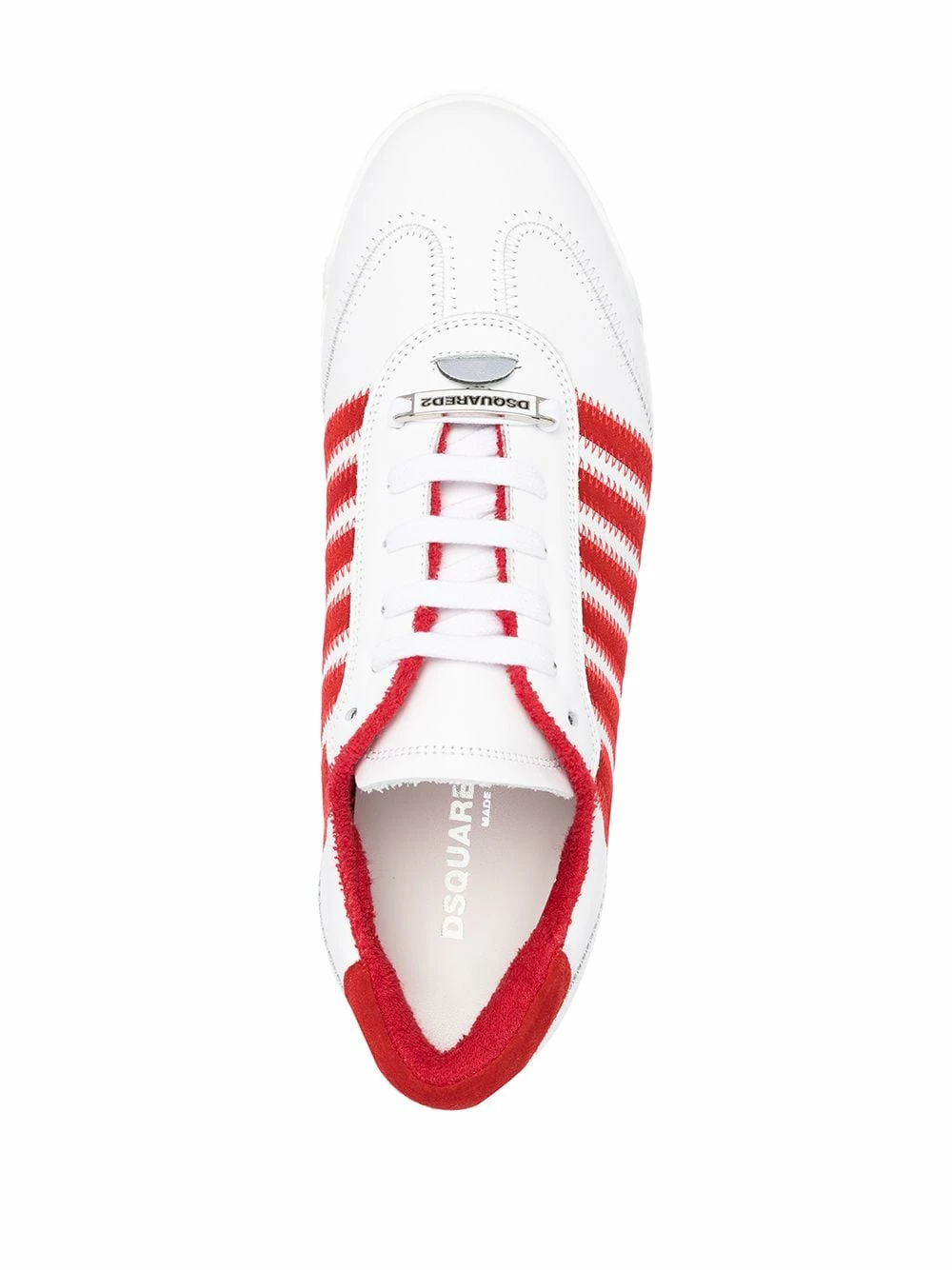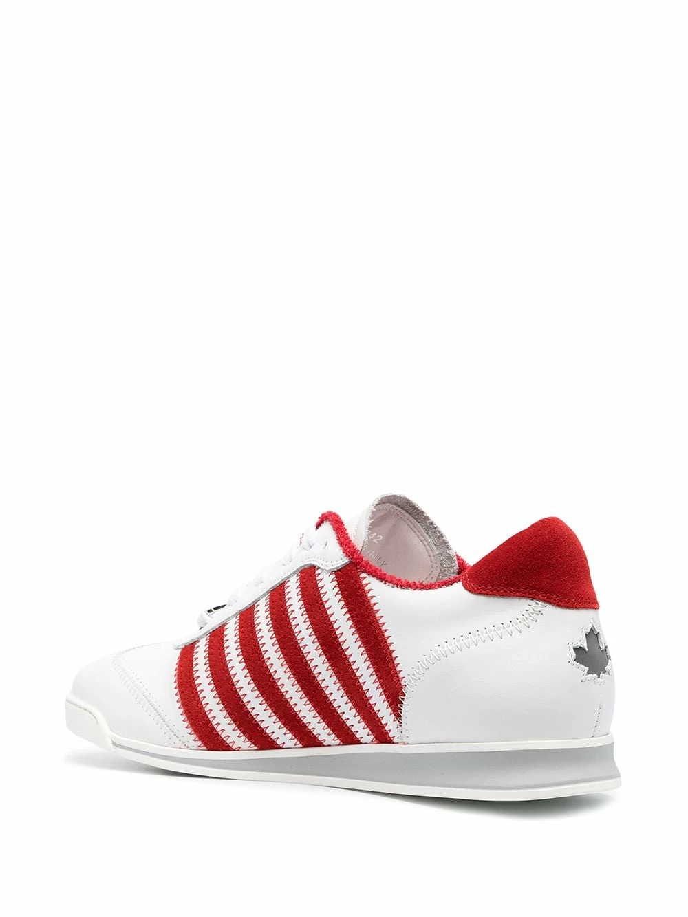Bout rond, fermeture à lacer sur le devant, détail de rayure latérale, contrefort à logo, contrefort contrastant. Couleur : blanc. Matière : cuir de veau.