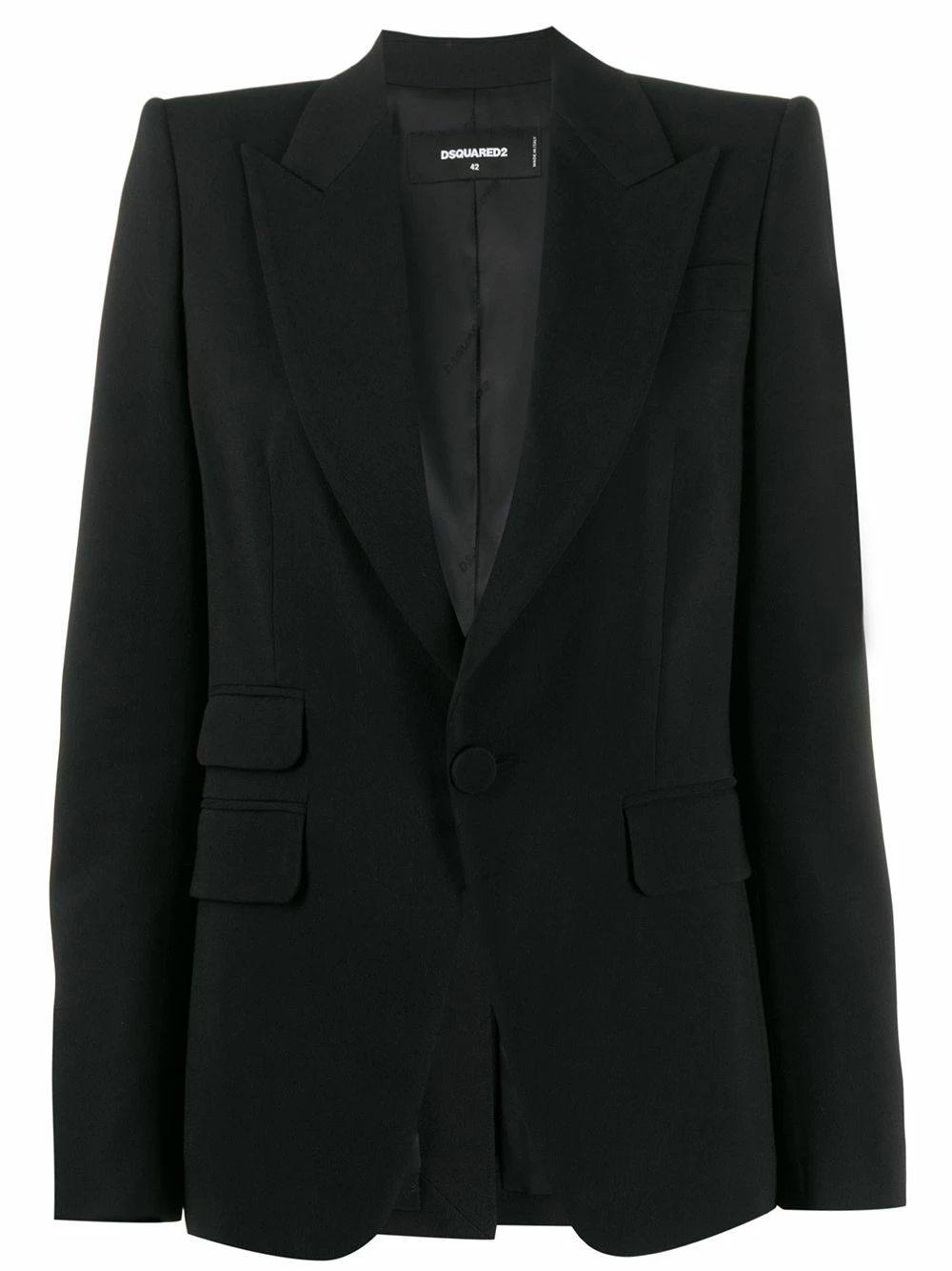 Blazer ajusté classique Dsquared2 avec manches longues et revers crantés. Couleur : noir.
