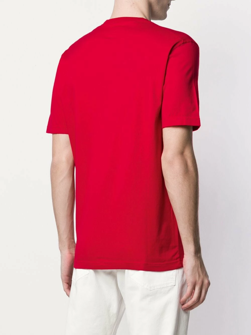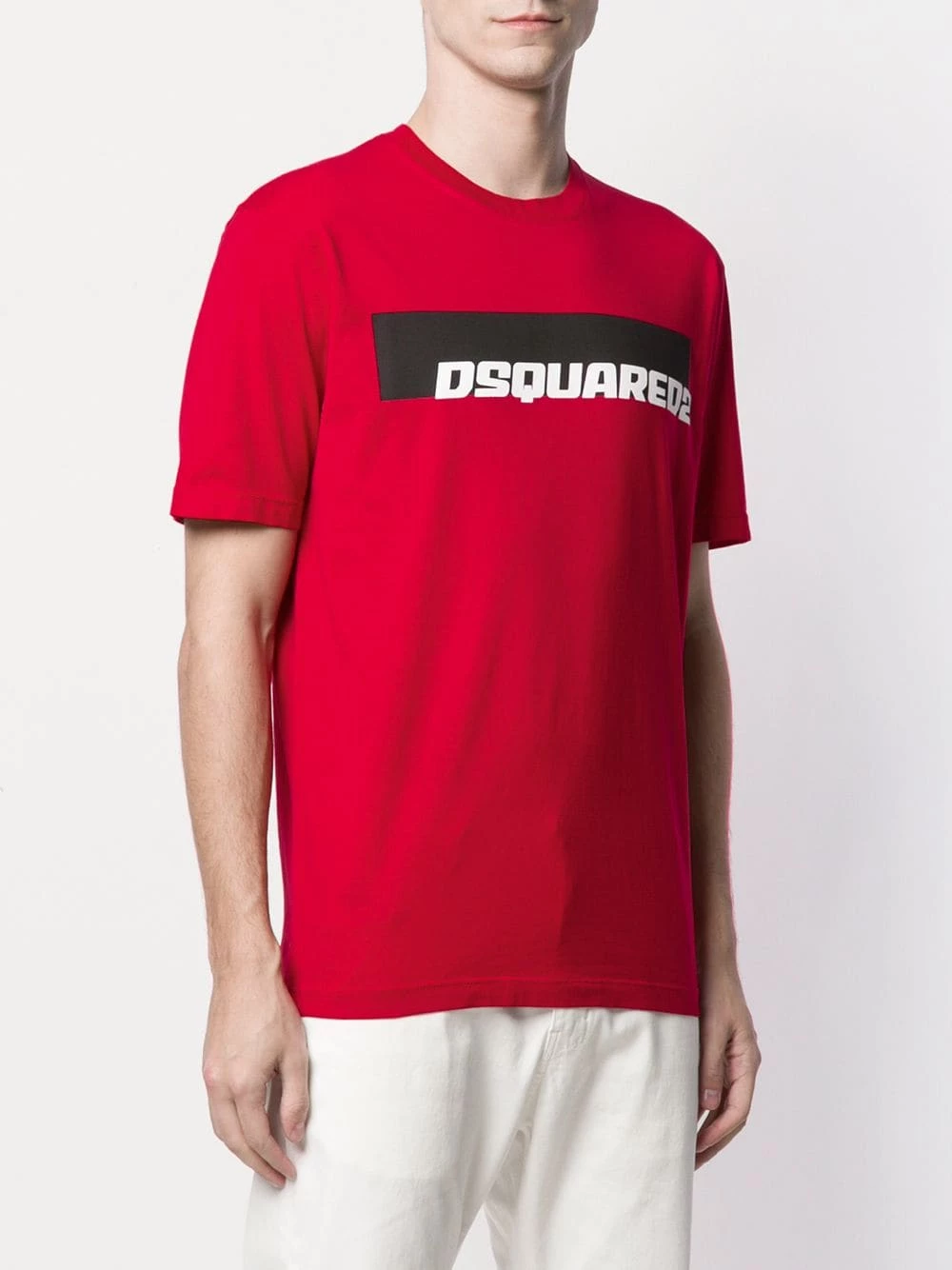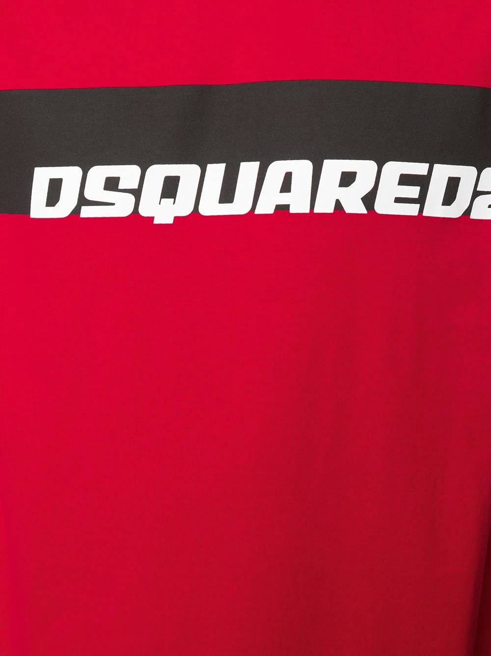 T-shirt Dsquard2 en coton Dsquared2 avec encolure ras du cou nervurée, manches courtes, coupe droite, ourlet droit et logo imprimé sur le devant. Couleur : rouge.