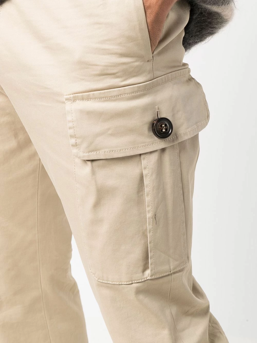 Coupe droite, deux poches latérales à rabat, boutonnière sur le devant, poches latérales fendues.