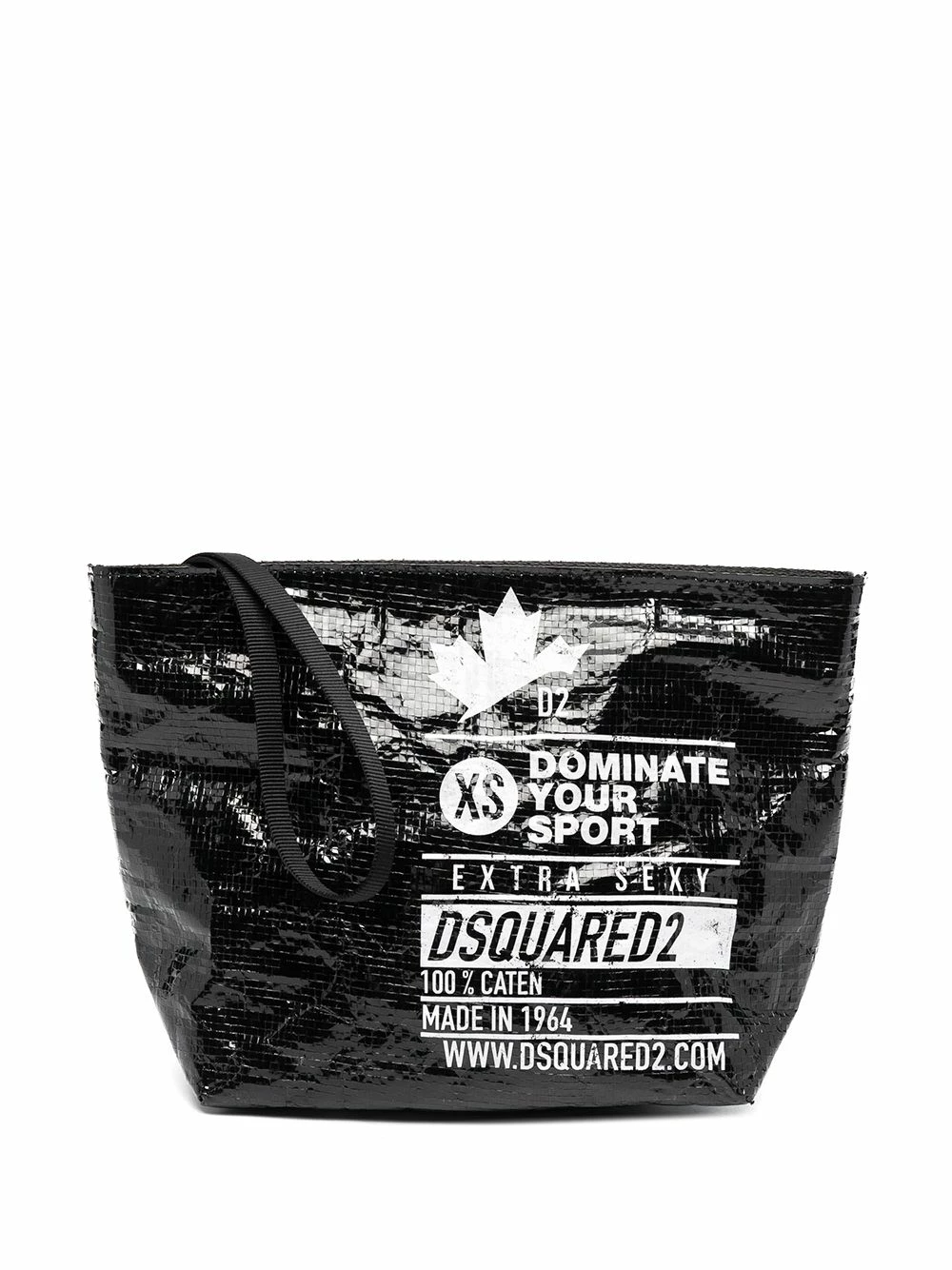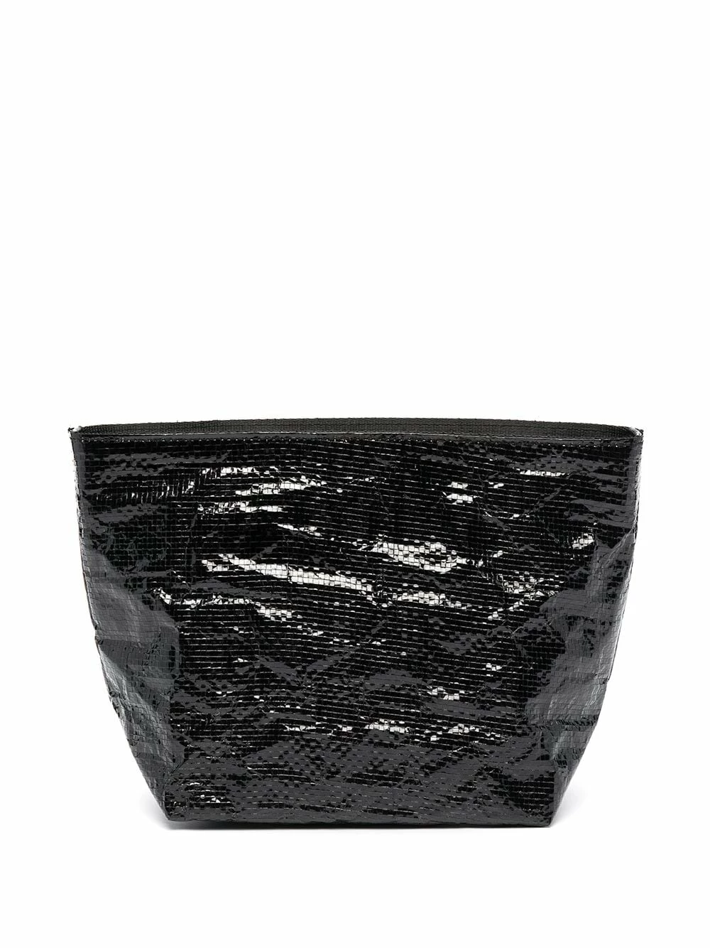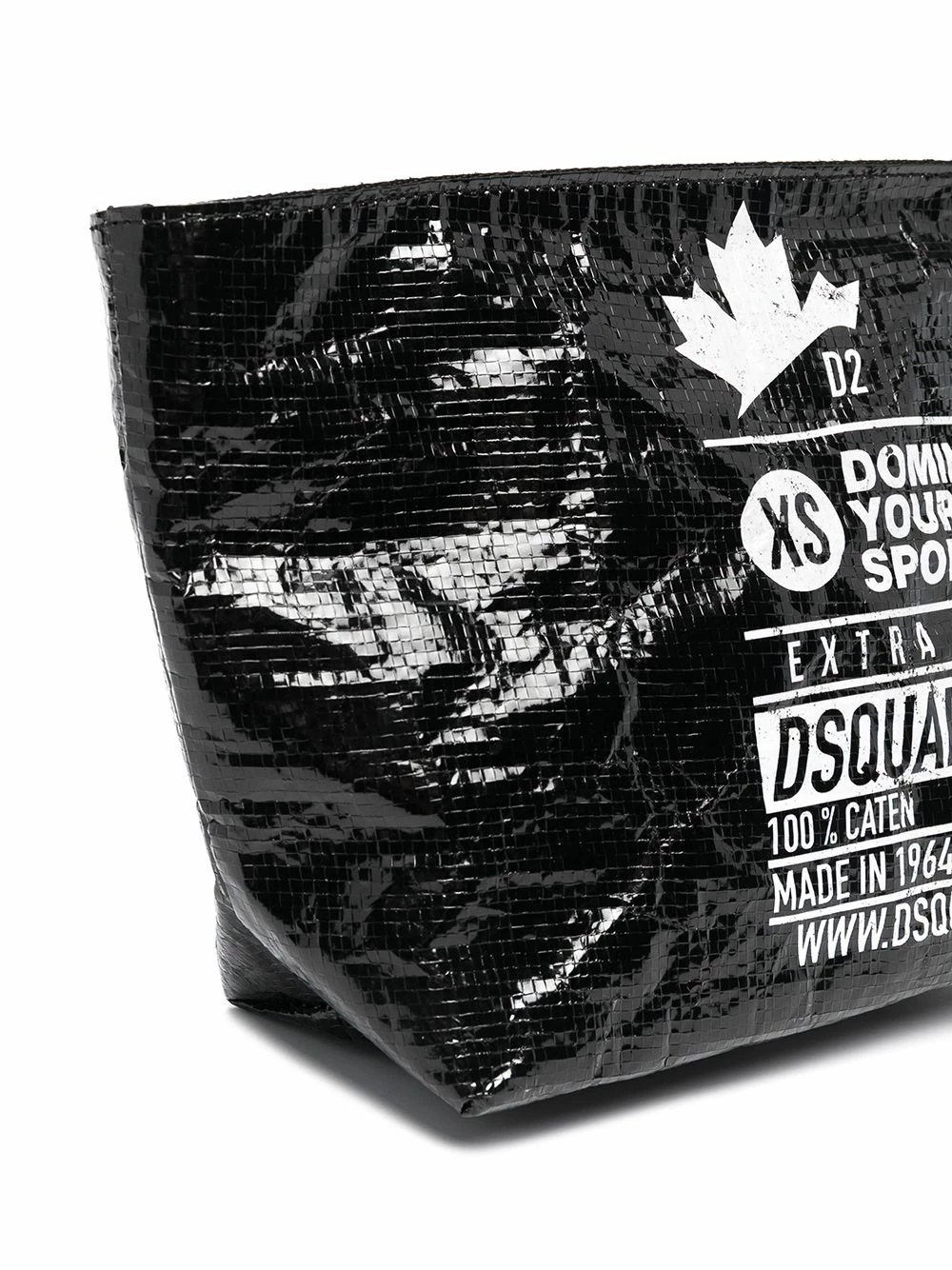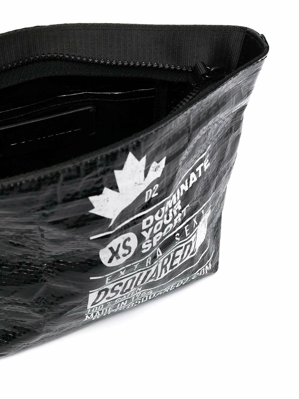 Logo imprimé sur le devant, bride porté poignet, fermeture zippée sur le dessus, forme carrée. Couleur : noir.