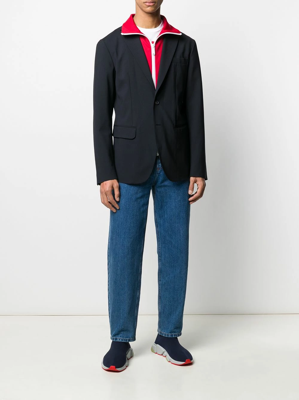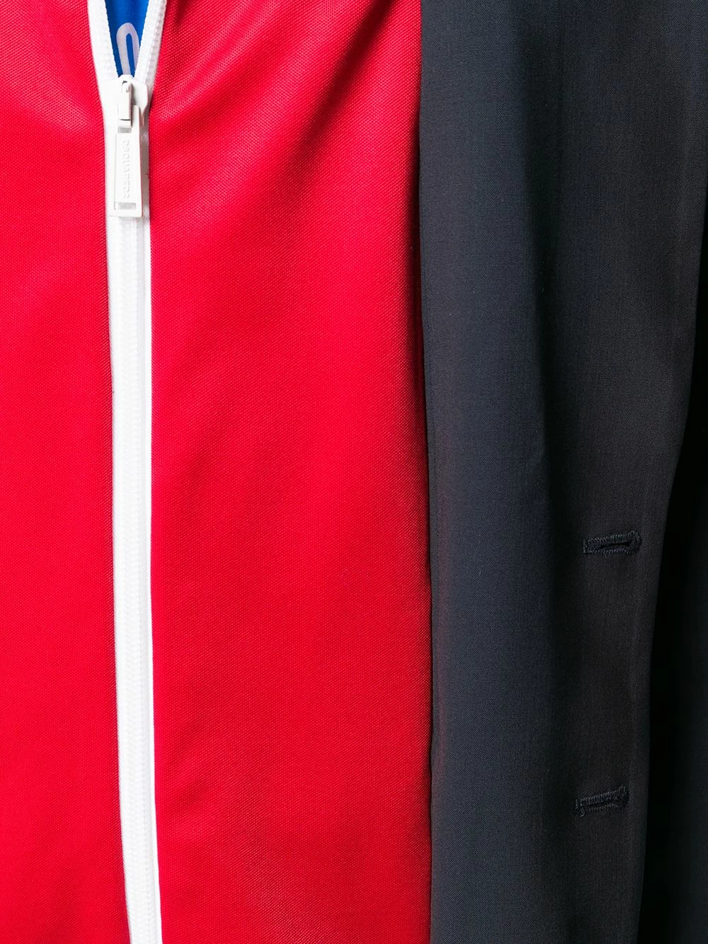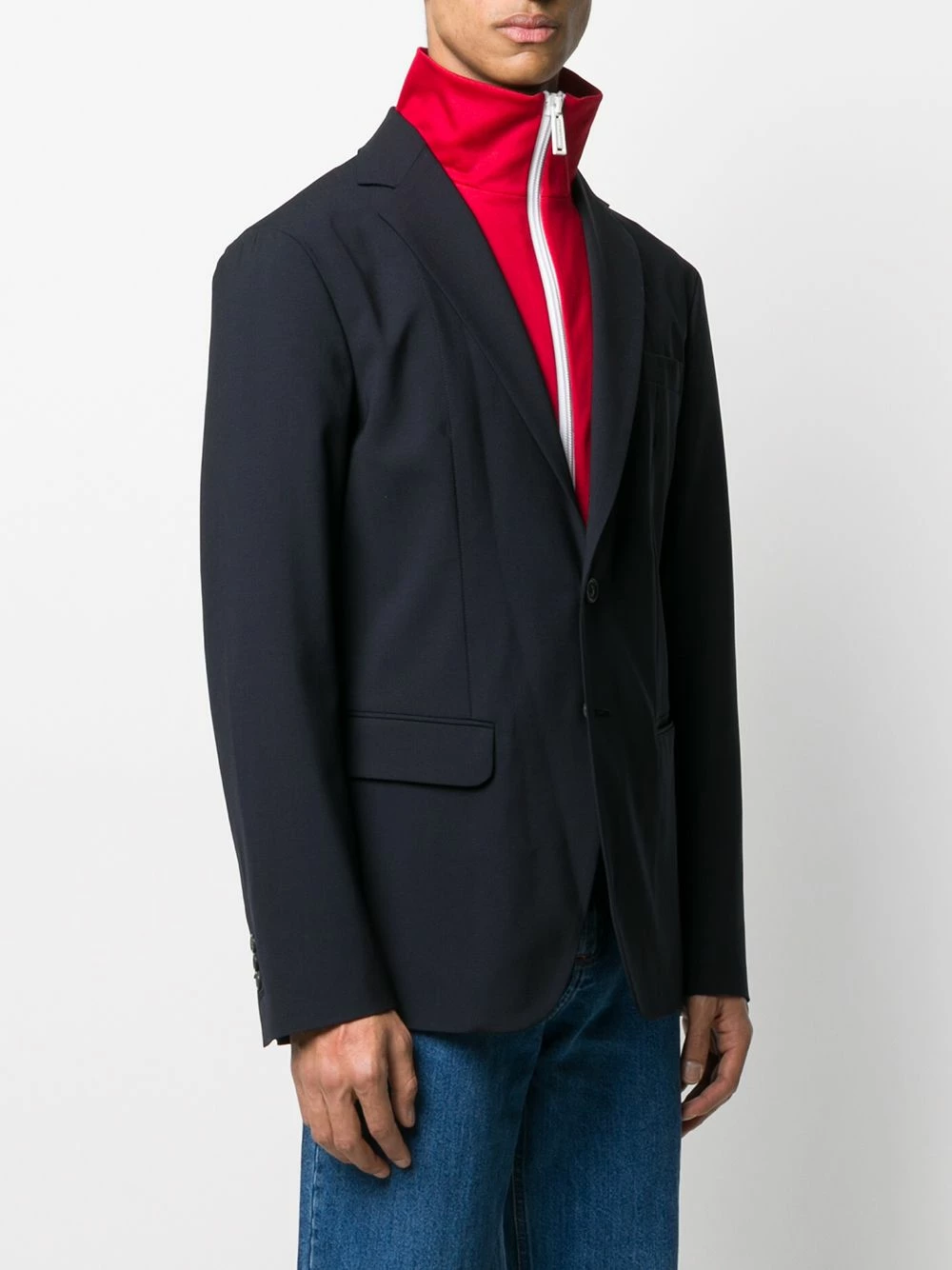 Blazer à design superposé Dsquared2 avec revers crantés, poche passepoilée sur la poitrine, boutonnière sur le devant, poches devant, manches longues, poignets boutonnés et double fente arrière.