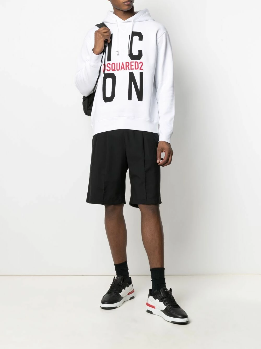 Logo imprimé sur le devant, capuche à lien de resserrage, effet d’épaules descendues, manches longues, ourlet droit. Couleur : blanc. Matière : coton.