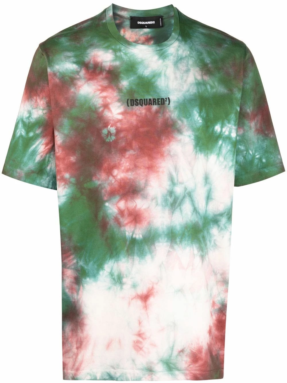 Logo imprimé à la poitrine, imprimé tie dye, encolure ronde, manches courtes, ourlet droit. Matière : coton.