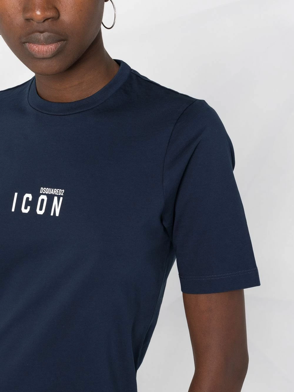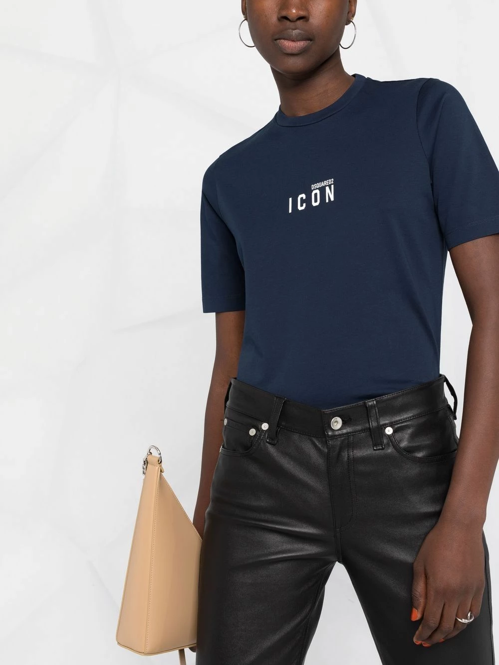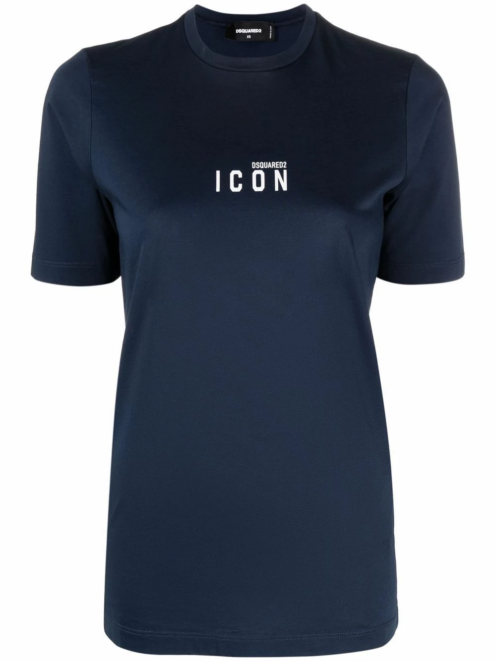 Tricot point jersey, logo imprimé à la poitrine, encolure ras du cou, manches courtes. Couleur : bleu. Matière : coton.