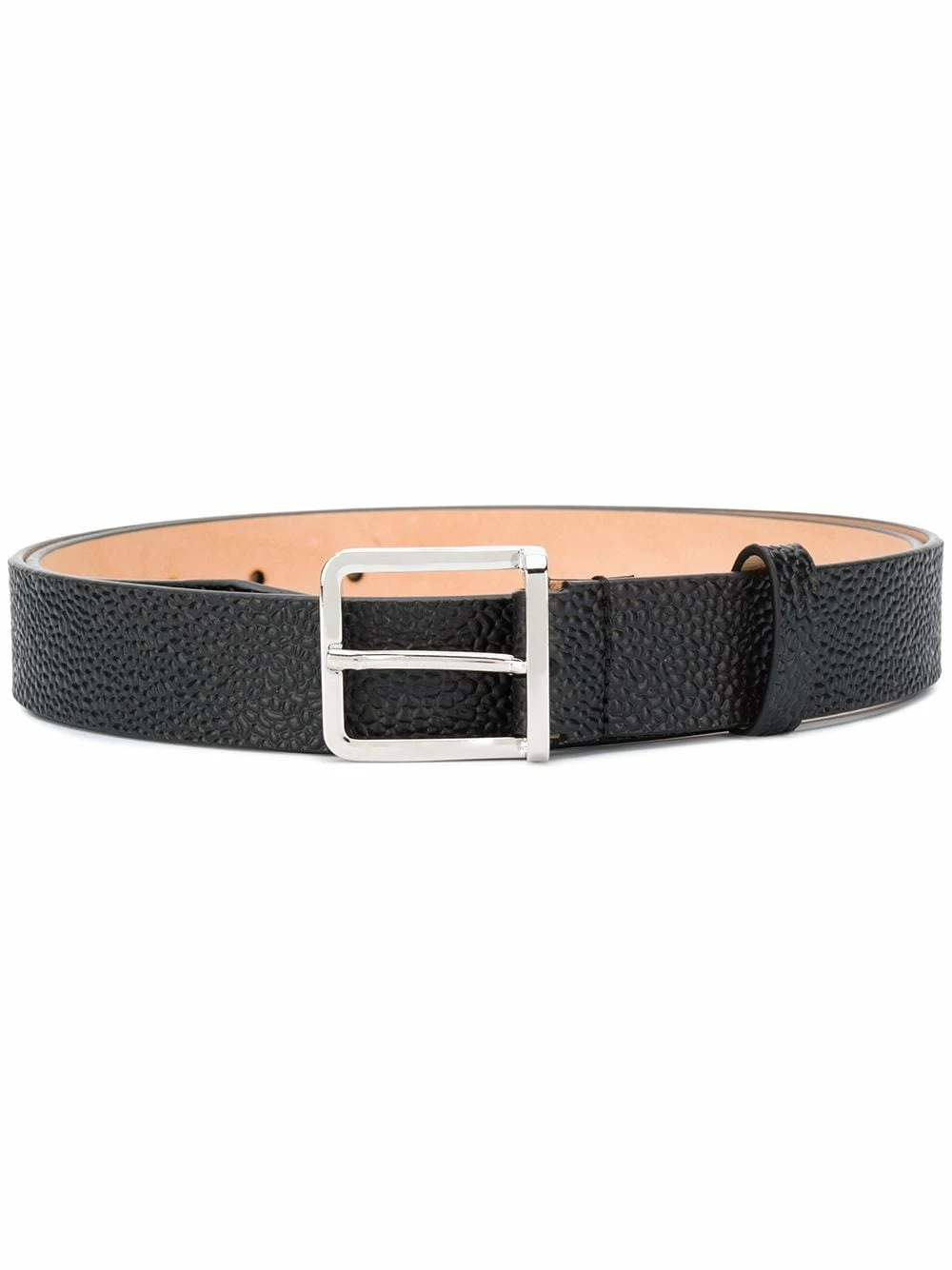 Taille ajustable, fermeture à boucle argentée. Couleur : noir. Matière : cuir.