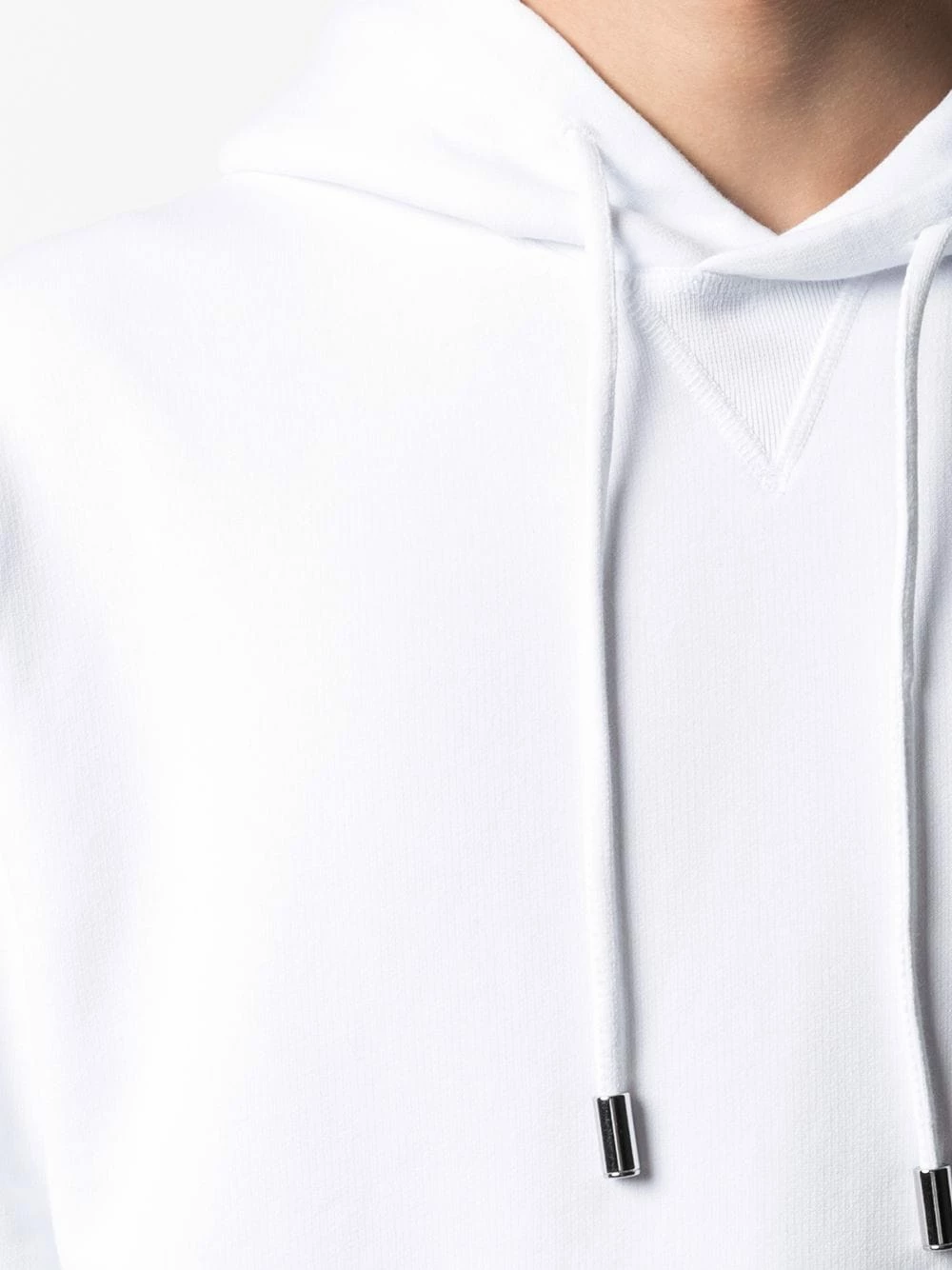 Tricot point jersey, détail nervuré, fermeture à lien de resserrage. Couleur : blanc. Matière : coton.