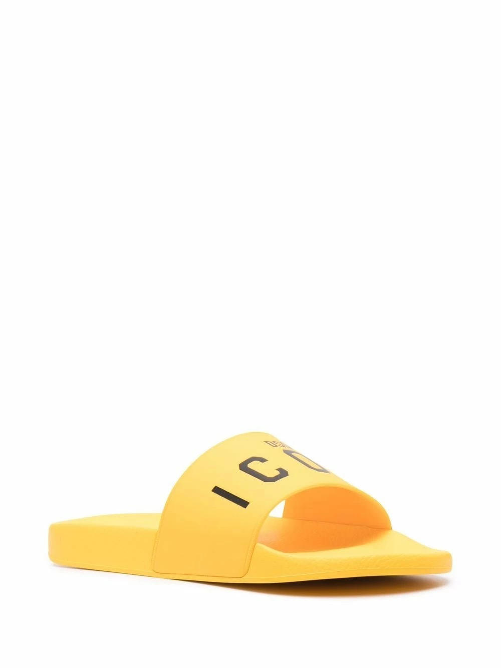 Motif Icon signature, bout ouvert, design à enfiler, semelle plate en caoutchouc. Couleur : jaune.