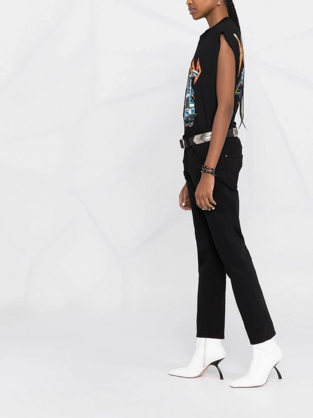 Fermeture à zip et boutons sur le devant, passants de ceinture, poches latérales arrondies, patch logo sur l’arrière, poches arrière plaquées, coupe droite. Couleur : noir. Matière : coton.