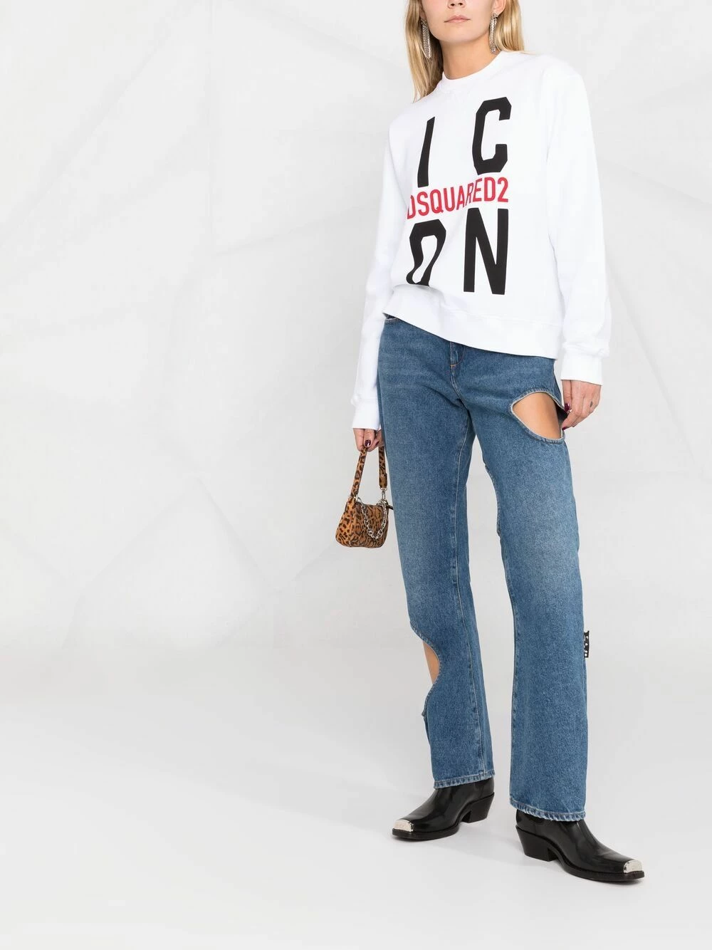 Encolure ras du cou, coutures ton sur ton, manches longues, poignets nervurés, logo imprimé sur le devant, ourlet nervuré. Matière : coton.