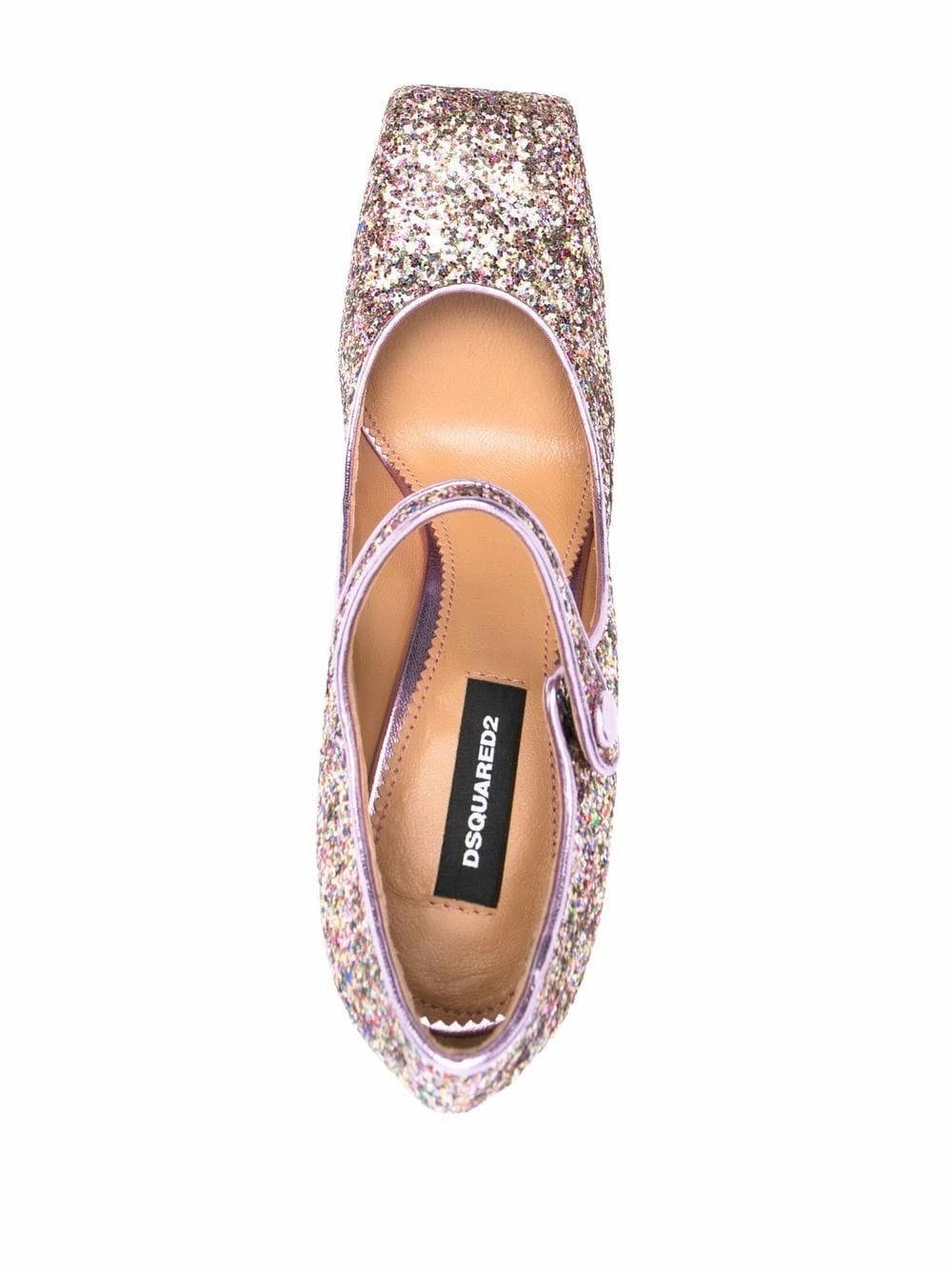 Rose, cuir de veau, bout carré, semelle intérieure à logo, fermeture à bouton pression, talon haut, semelle en cuir.