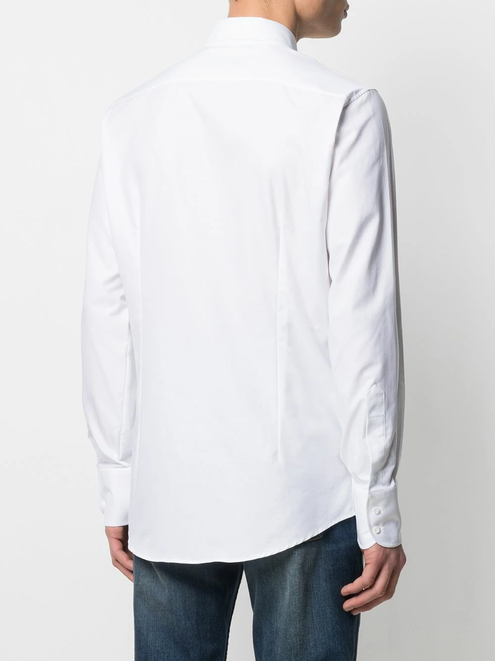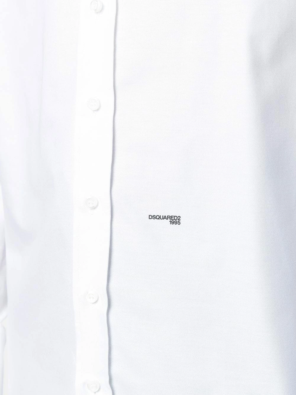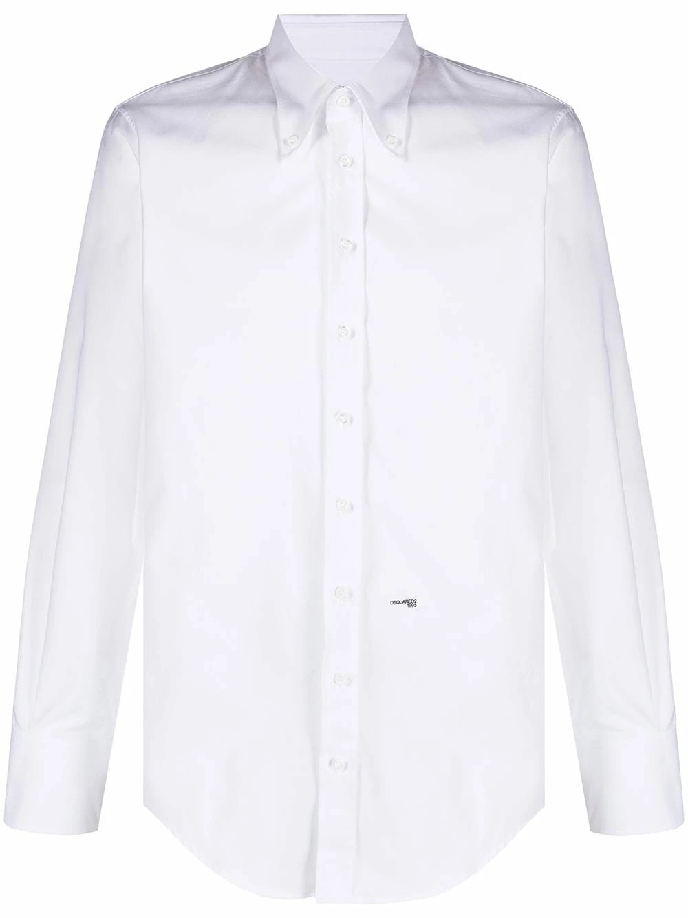 Logo brodé, col boutonné, boutonnière sur le devant, manches longues, poignets boutonnés, ourlet incurvé. Couleur : blanc. Matière : coton.