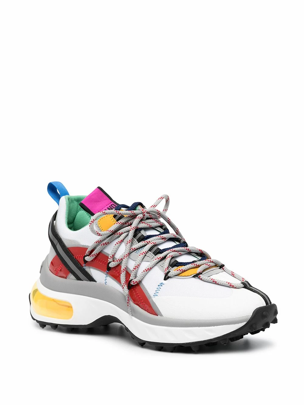 Design à empiècements, fermeture à lacer sur le devant, bout rond, languette d’enfilage au talon, semelle plate en caoutchouc. Couleur : blanc.