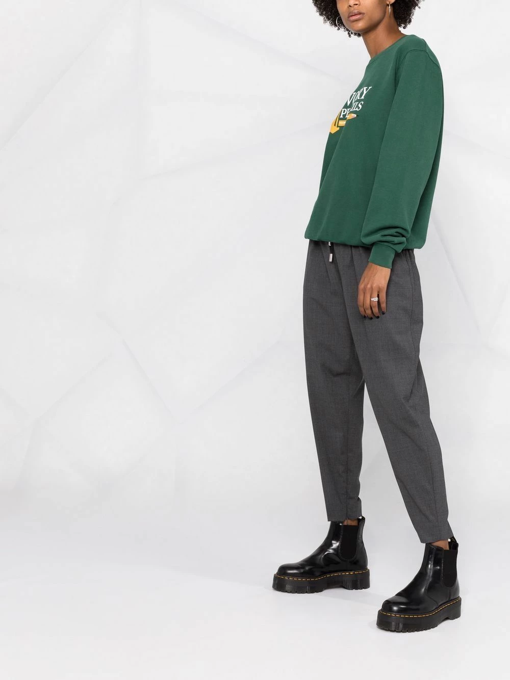Ceinture élastique, lien de resserrage, deux poches latérales fendues, poches arrière passepoilées, coupe courte. Couleur : gris.