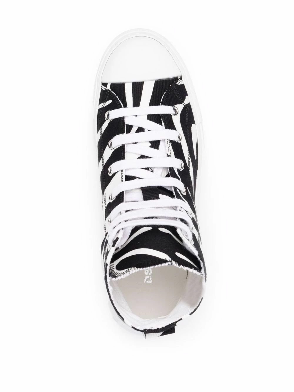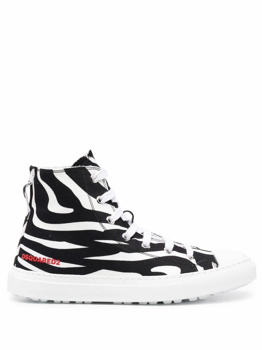 Imprimé zèbre, logo imprimé sur le côté, hauteur cheville, bout en caoutchouc, bout rond, fermeture à lacer sur le devant, semelle plate en caoutchouc.